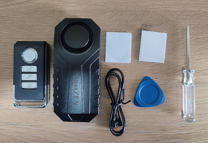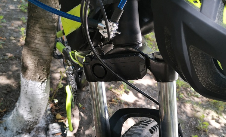 Távirányító is jár hozzá, ami ugyanúgy működik, mint egy autós távirányító. 3 gombja van. Az egyik a riasztó aktiválására, ha felügyelet nélkül hagyjuk a kerékpárt. Élesíti a riasztót, és onnantól kezdve a kerékpár minden mozdulata aktiválja a riasztót. A többi a riasztás hangerejének és mozgásérzékenységének beállítására szolgál (hogy a riasztás ne szólaljon meg ok nélkül).