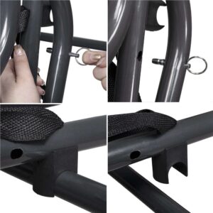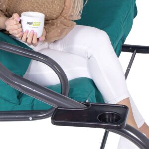 A fém lábak csúszásgátló elemekkel rendelkeznek, így a teraszon és a kert más részein is elhelyezhetők. A hinta erős felépítése biztosítja a biztonságot, köszönhetően az akár 48 mm-es vastag csöveknek, amelyek növelik a hinta súlyát és biztosítják a teherbírást. A három személyes hinta maximális terhelhetősége 280 kg.