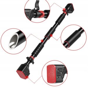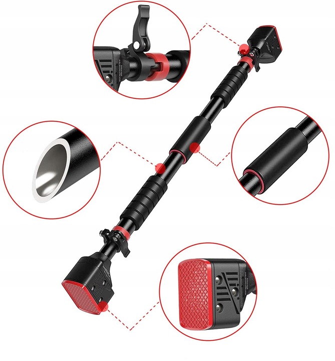 Prinderea capetelor este putin incomoda, cat timp invarti de tija pentru extindere, se rotesc si capetele si trebuie tinute cu mana, dar nu as cataloga asta ca un minus. O data montata bara, este foarte stabila (am 78kg, 1.82)
