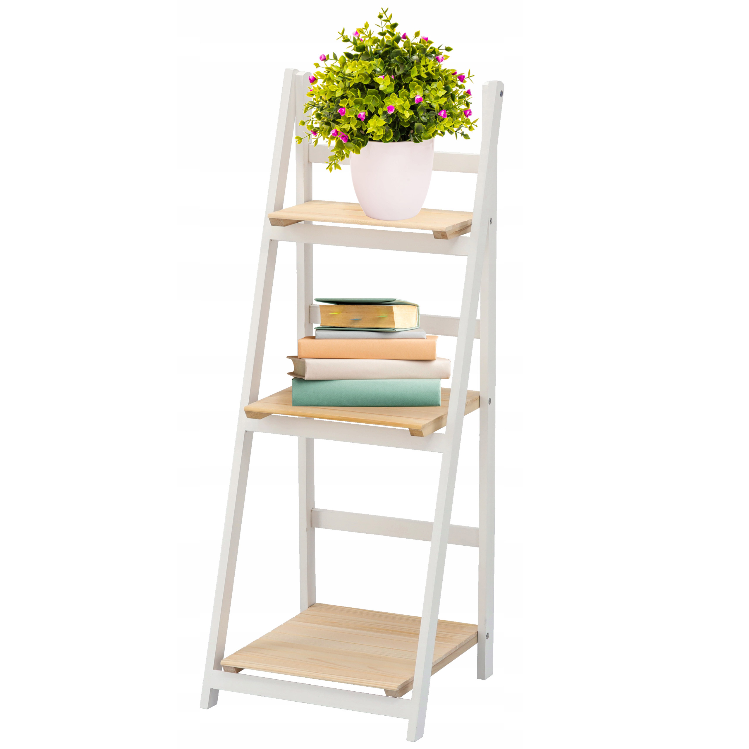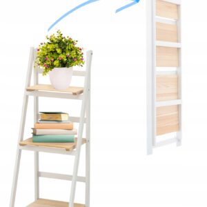 Biblioteca pliabila din lemn, 3 rafturi, 42x109x39 cm, alb maro