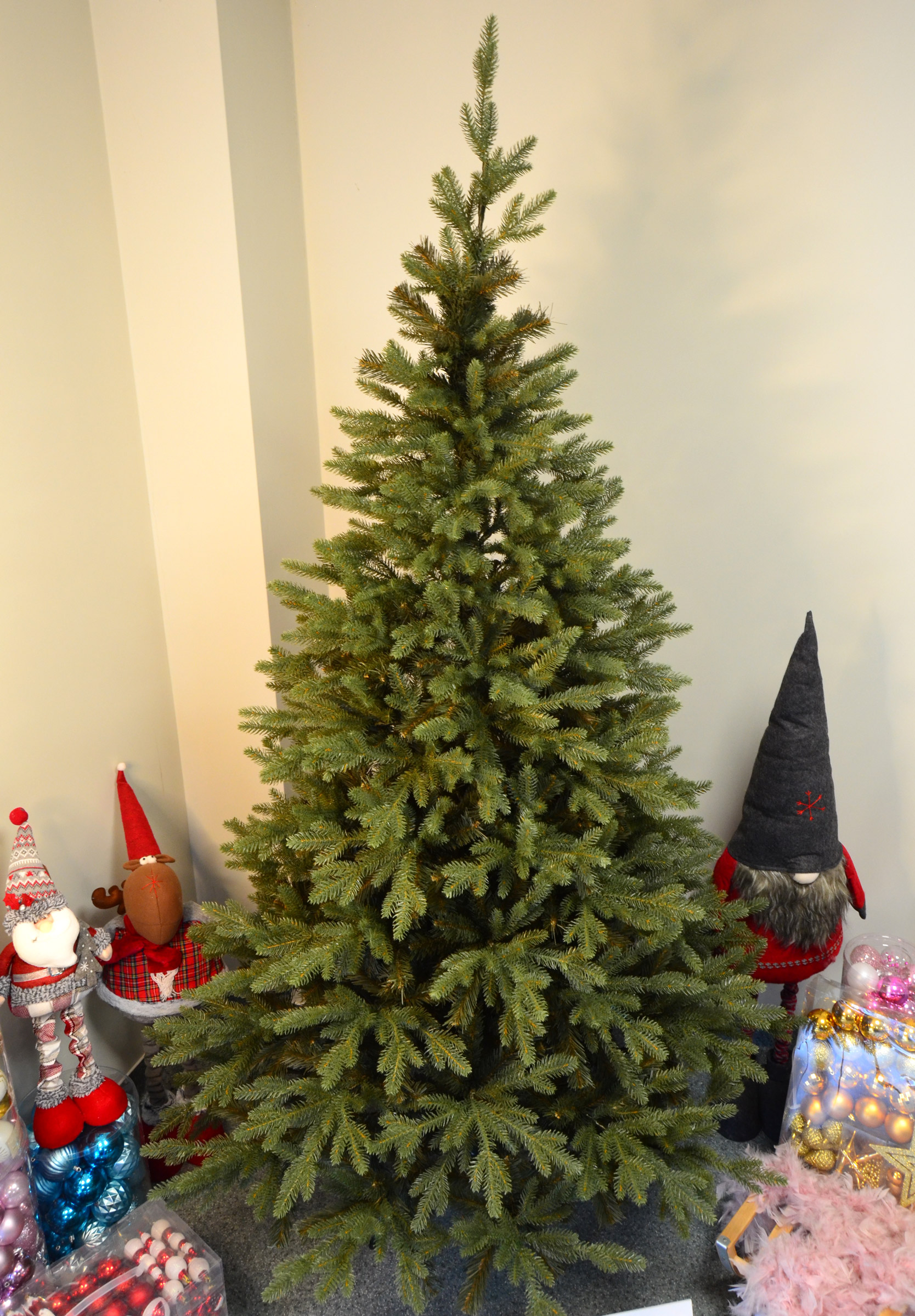 Az ágak könnyen hajlíthatók különböző irányokba, így tetszés szerint formálhatók és alakíthatók. Az egyes gallyak élethű, változatos végekkel rendelkeznek, egyik sem tűnik mesterségesen vágottnak vagy egyhangúnak. Színük rendkívül valósághűen utánozza az igazi fenyőtűk árnyalatát, és idővel sem fakul. A gondosan elrejtett drót nem látható a tűk között, ugyanakkor elég vastag és erős ahhoz, hogy a fa évekig tartósan szolgálja Önt. A PVC fóliából készült tűk erősek és tartósak, ugyanakkor kellemes tapintásúak. Mivel ez a karácsonyfa – az igazi fákkal ellentétben – nem hullatja a tűleveleit, nem kell rendszeresen porszívózni körülötte. Ráadásul a tűk egyenletesen helyezkednek el az ágak teljes hosszán, így a fa dús, hézagmentes megjelenést biztosít.