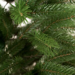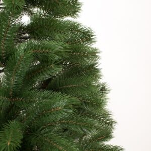 A PVC fóliából készült tűlevelek erősek, tartósak, mégis kellemes tapintásúak. Mivel ez a karácsonyfa – ellentétben az élő fákkal – nem hullatja tűleveleit, nem kell gyakran porszívóznia. Ráadásul a tűk egyenletesen oszlanak el az ágak teljes hosszán, ami tömör, résmentes megjelenést biztosít.