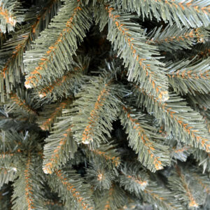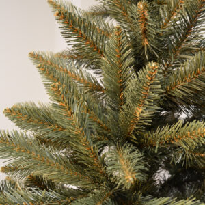 A PVC fóliából készült tűlevelek erősek, tartósak, mégis kellemes tapintásúak. Mivel ez a karácsonyfa – a valódi fákkal ellentétben – nem hullajtja a tűit, nem szükséges rendszeresen porszívózni körülötte. Ráadásul a tűlevelek egyenletesen helyezkednek el az ágak teljes hosszában, így a fa minden irányból dús és telt hatást kelt, hézagok nélkül.