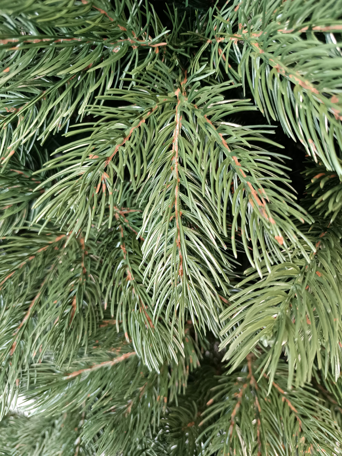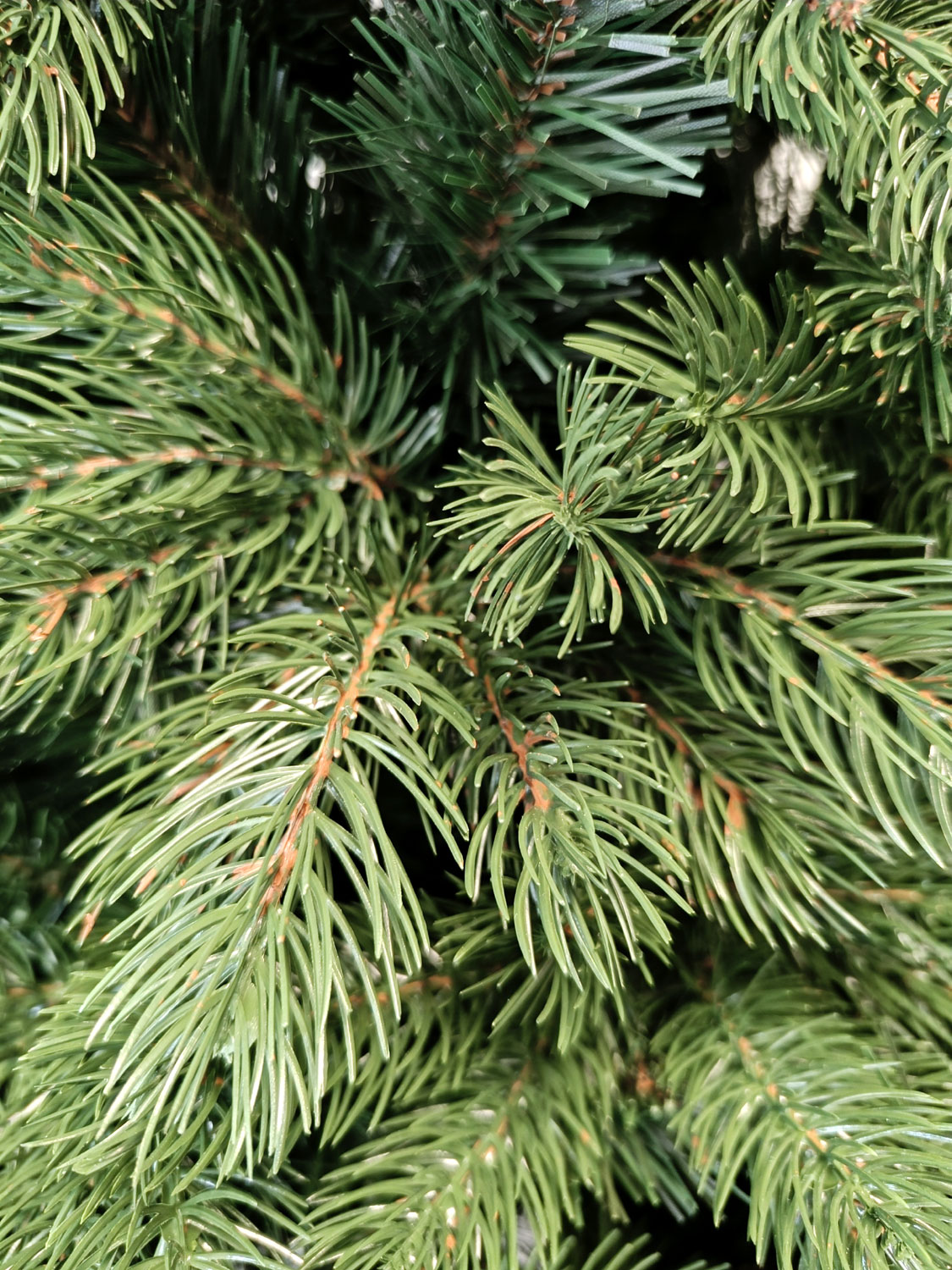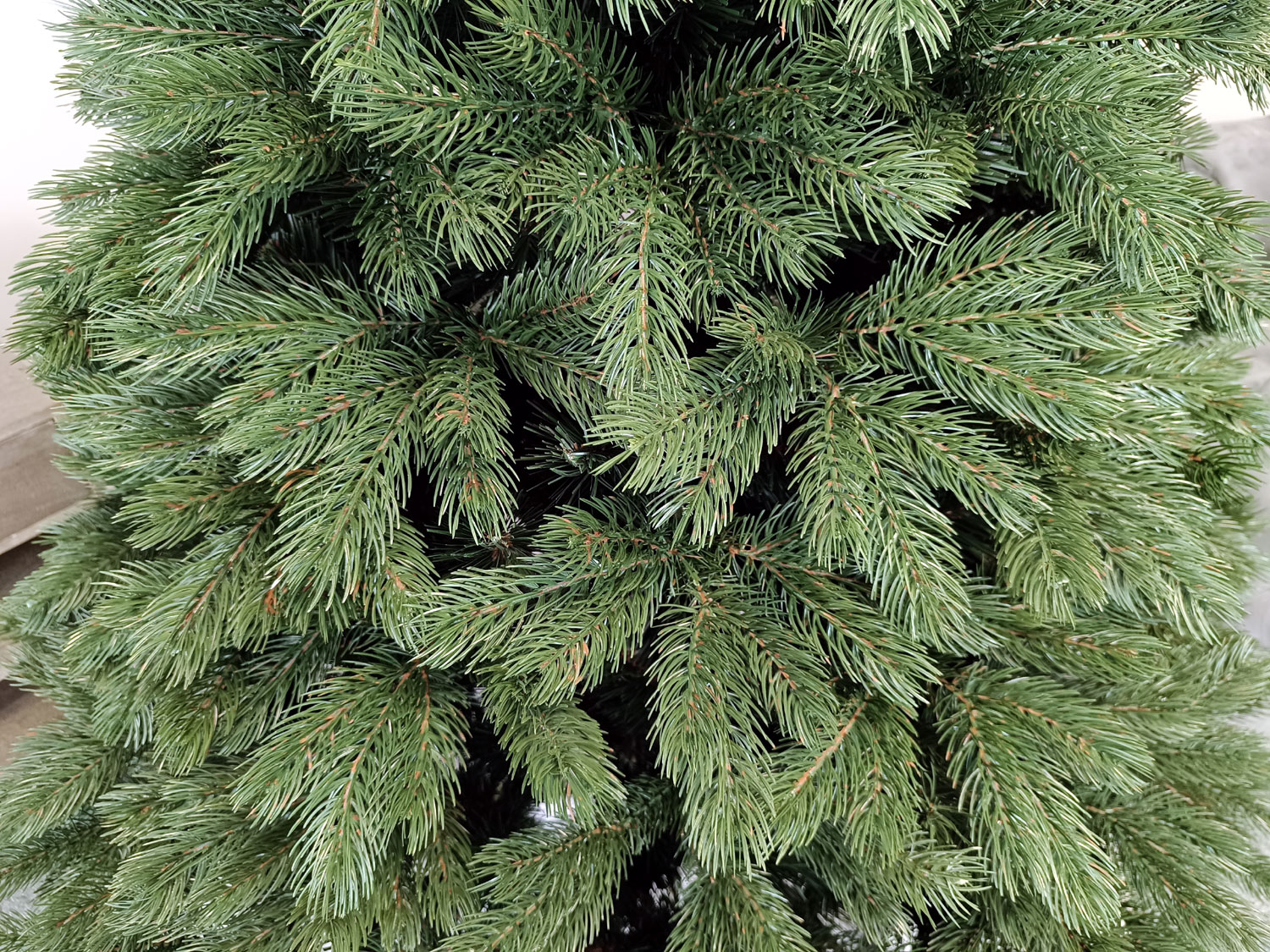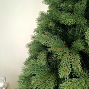 A PVC fóliából készült tűlevelek strapabírók, mégis kellemes tapintásúak. Mivel a fa – a valódi fenyőkkel ellentétben – nem hullajtja a tűleveleit, nem kell rendszeresen porszívózni körülötte. Ráadásul a levelek egyenletesen helyezkednek el az ágak teljes hosszában, ami tömör, élettel teli megjelenést biztosít, hézagok nélkül.