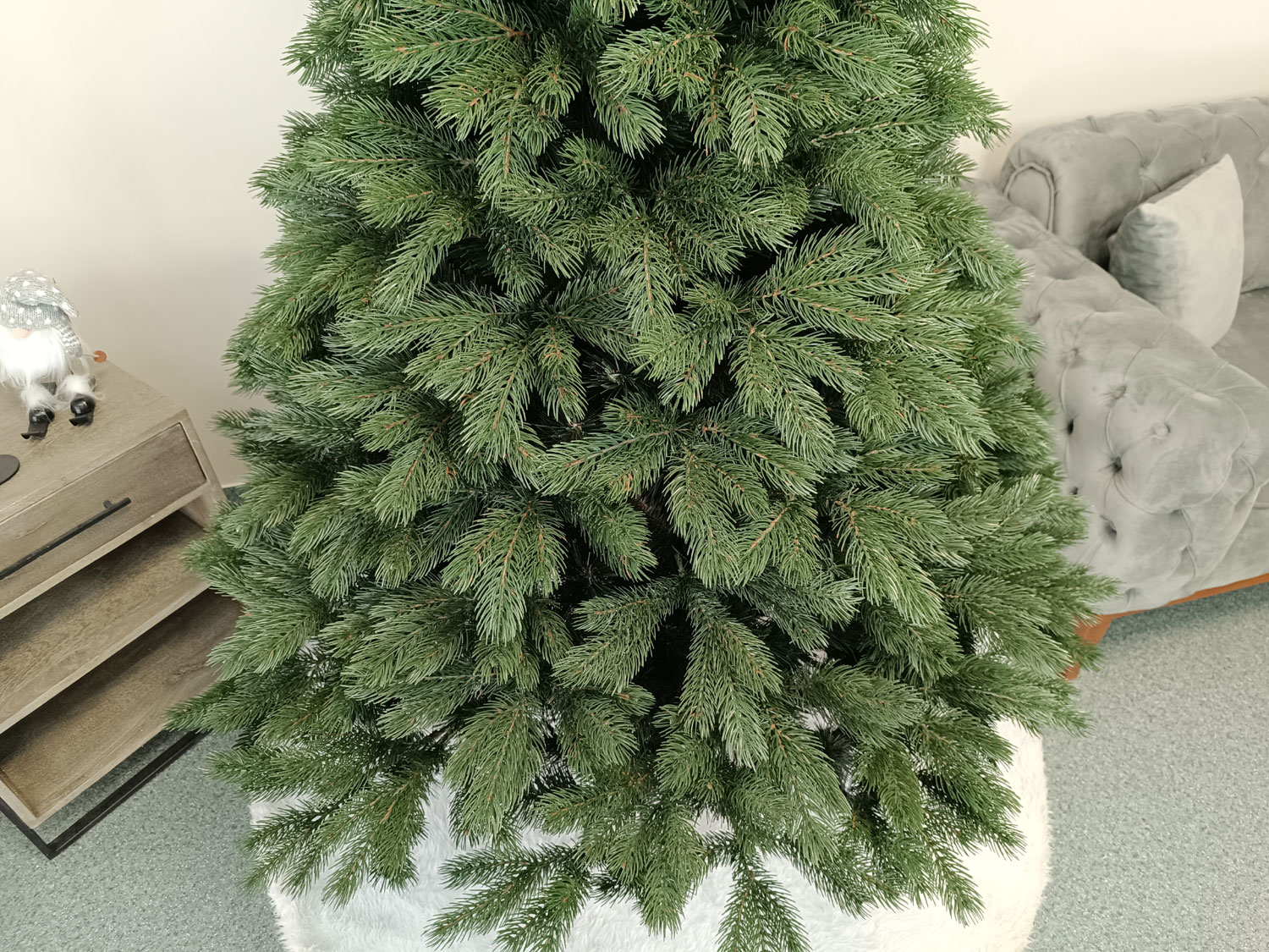 Karácsonyfánk legnagyobb előnye a nagyon sűrűn elrendezett ágak nagy száma. Ennek a sűrűségnek és lenyűgöző eleganciának köszönhetően a fa nem igényel sok díszítést, hiszen önmagában is tökéletes dekoráció minden belső térben. Az alsó ágak magassága pedig úgy lett kialakítva, hogy kényelmesen elhelyezhesse alatta a karácsonyi ajándékokat.