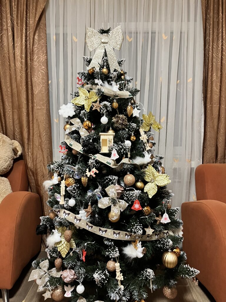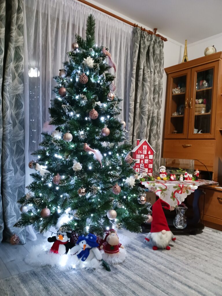A bemutatott karácsonyfa különleges, mégis ismerős és szeretett módon adja vissza az ünnep varázsát, kiemelve a melegséget és a családi hangulatot.