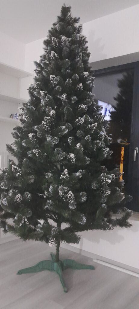 Suportul totuși prea fragil versus înălțime! Am avut emoții spre finalul împodobirii cand bradul a devenit instabil și s-a înclinat puțin. Poate un suport metalic ar fi mai indicat!