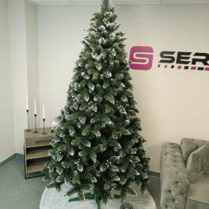 A mi karácsonyfánk legnagyobb előnye a sűrűn elhelyezett ágak nagy száma. Dús megjelenésének és elegáns formájának köszönhetően nem igényel sok dekorációt – önmagában is lenyűgöző dísze bármely belső térnek! Az alsó ágak megfelelő magasságban helyezkednek el, így az ajándékokat kényelmesen elhelyezheti a fa alatt.
