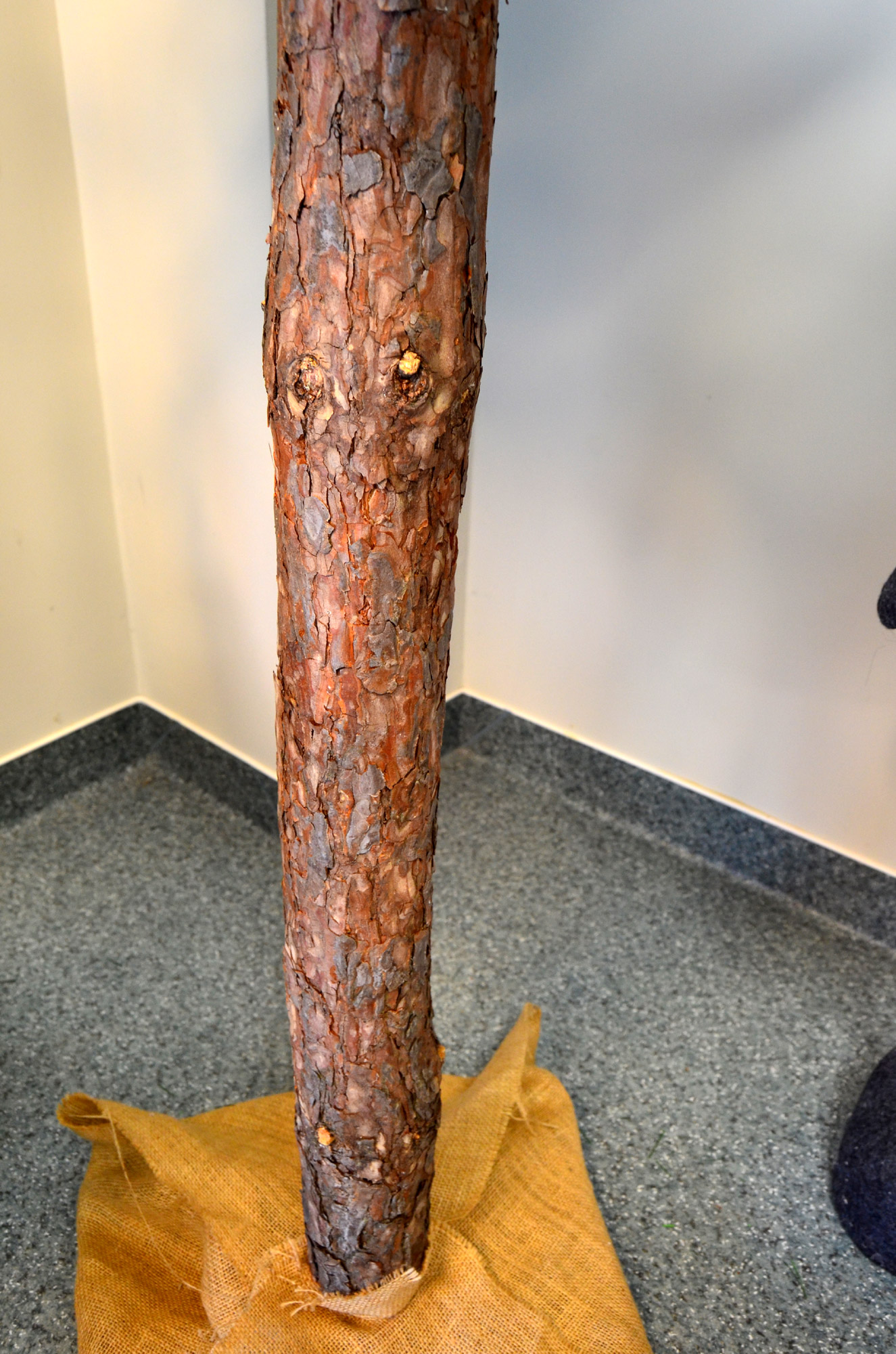 Természetes fa törzs, kb. 80 cm magas (±5 cm), átmérője 6–9 cm