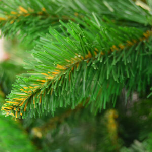 Az ágak könnyen hajlíthatók különböző irányokba, így tetszés szerint formálhatók és alakíthatók. Az egyes gallyak élethű, változatos végekkel rendelkeznek, egyik sem tűnik mesterségesen vágottnak vagy egyhangúnak. Színük rendkívül valósághűen utánozza az igazi fenyőtűk árnyalatát, és idővel sem fakul. A gondosan elrejtett drót nem látható a tűk között, ugyanakkor elég vastag és erős ahhoz, hogy a fa évekig tartósan szolgálja Önt. A PVC fóliából készült tűk erősek és tartósak, ugyanakkor kellemes tapintásúak. Mivel ez a karácsonyfa – az igazi fákkal ellentétben – nem hullatja a tűleveleit, nem kell rendszeresen porszívózni körülötte. Ráadásul a tűk egyenletesen helyezkednek el az ágak teljes hosszán, így a fa dús, hézagmentes megjelenést biztosít.