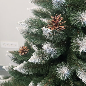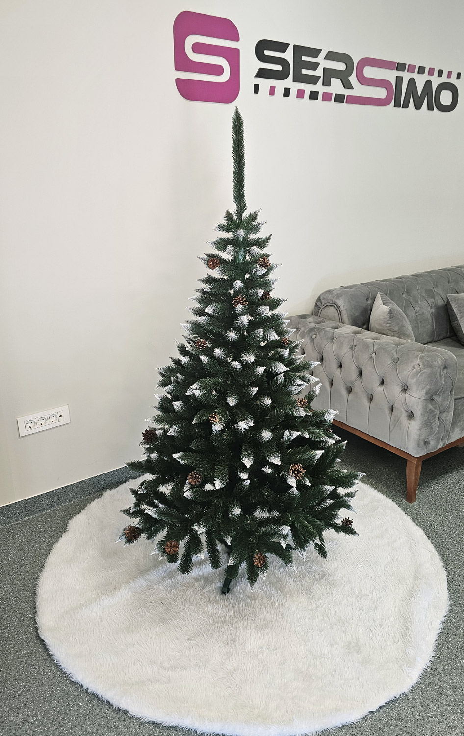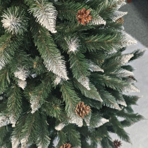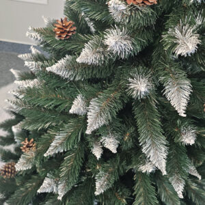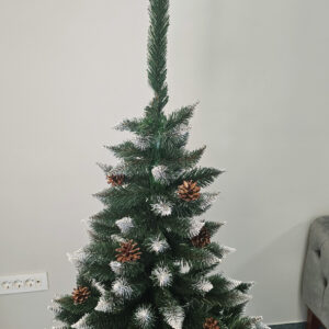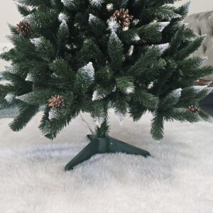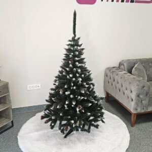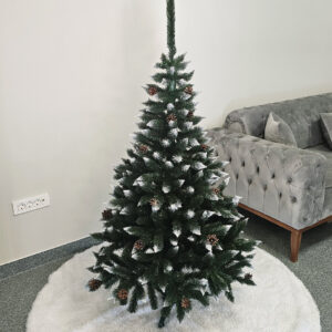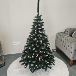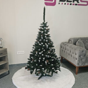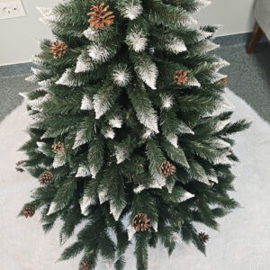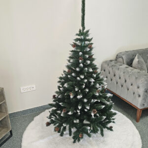 – A fa teljes magassága (a padlótól a csúcsig, a tartóval együtt mért méret): 150 cm – Átmérő (az alsó rész legszélesebb pontján): 100 cm – Tartó: fém – Hó: IGEN, az ágak végén – Egyéb díszítés: természetes tobozok