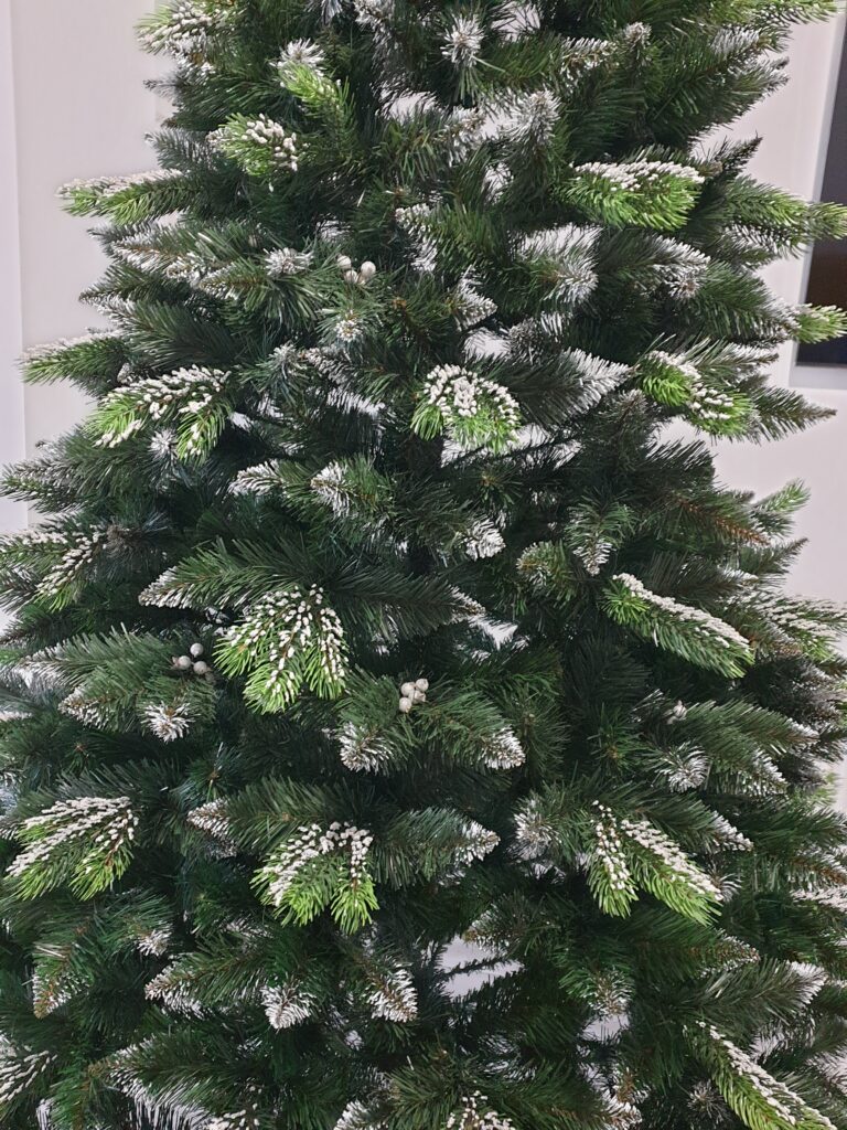 Ezek a karácsonyfák rendkívül élethű megjelenésűek, és szinte megkülönböztethetetlenek a természetes fenyőktől. Ágaik sűrűn rétegzettek, és minden karácsonyi díszt stabilan tartanak. A fa ágai díszek nélkül is gyönyörűen mutatnak, kiváló minőségű anyagokból készülnek, és megfelelnek az Európai Unió legmagasabb biztonsági előírásainak.