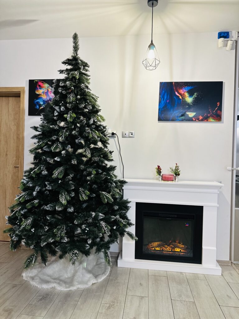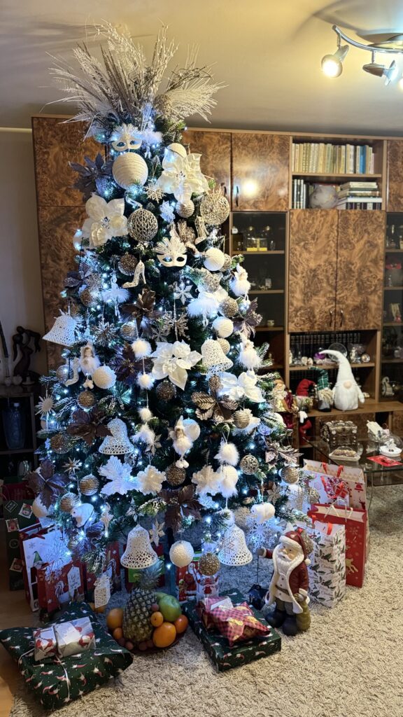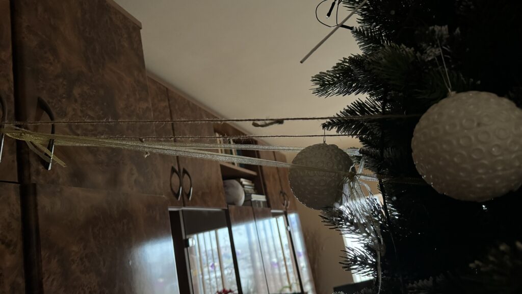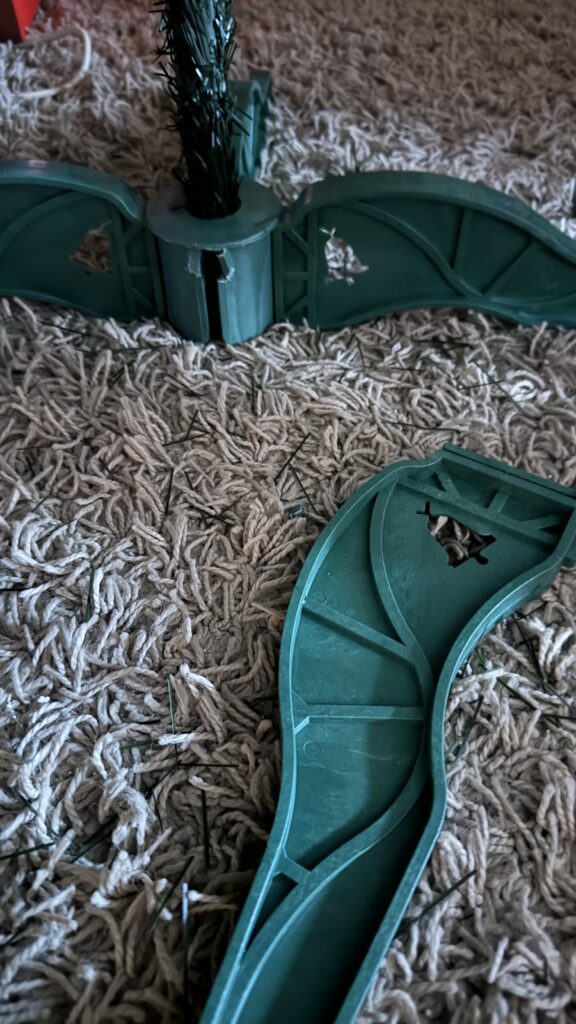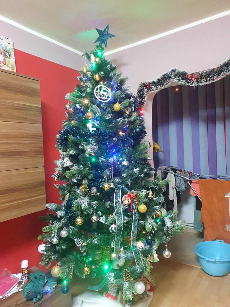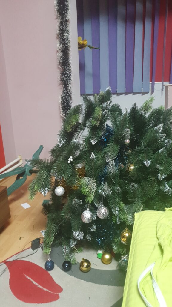 Bradul e foarte frumos,dar suportul a cedat si s-a rupt. Bradul a cazut ,acum este legat…🥲🥲