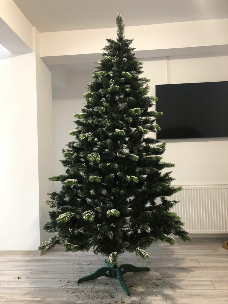 Un brad frumos, cat de cat des dar pentru dimensiunea aceasta suportul din plastic e cam instabil iar bradul se clatina si se lasa usor pe o parte de la greutate. L-a instalare s-au scuturat cateva ace, dar e normal. Nu e 100% ca in poze, dar e un brad frumos, mare, care cu siguranta dupa impodobire va atrage atentia. Sunt multumita.