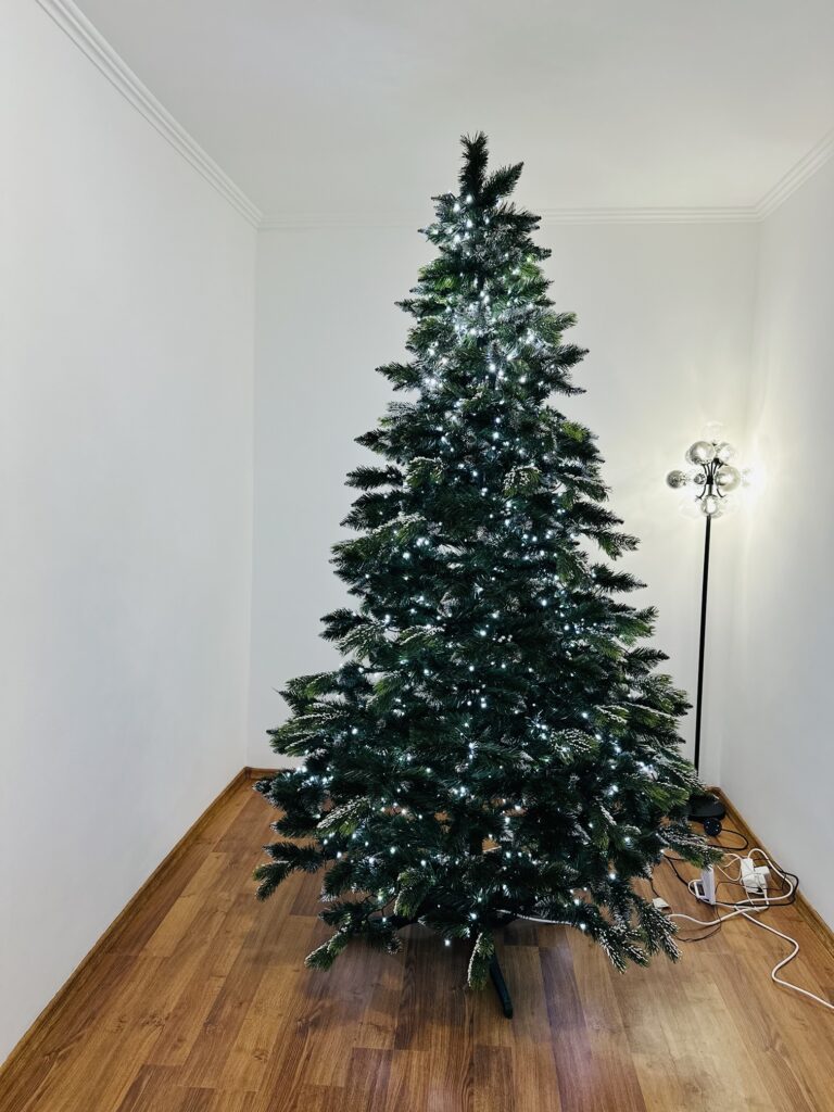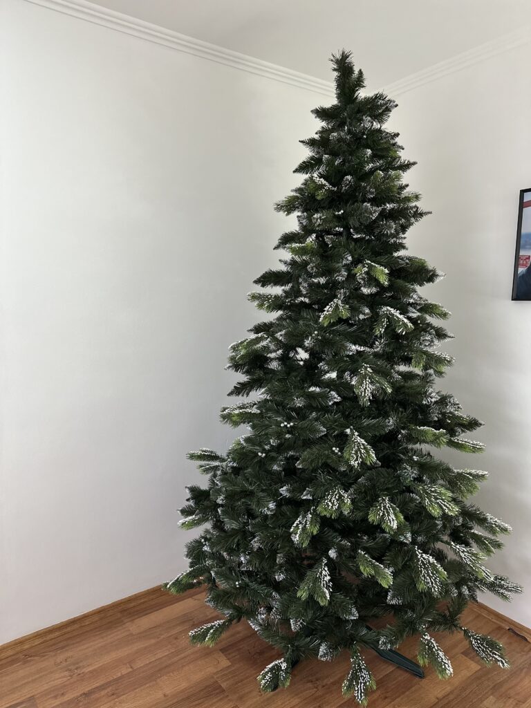 Bradul este superb,bogat.Crengile 3D m-au surprins plăcut.Suportul din plastic în schimb lasă de dorit.L un brad de 250 cm ar fi trebuit un suport de metal.Dous picioare au cedat sj a trebuit sa comand alt suport.Dau 5 steluțe pentru frumusețea bradului