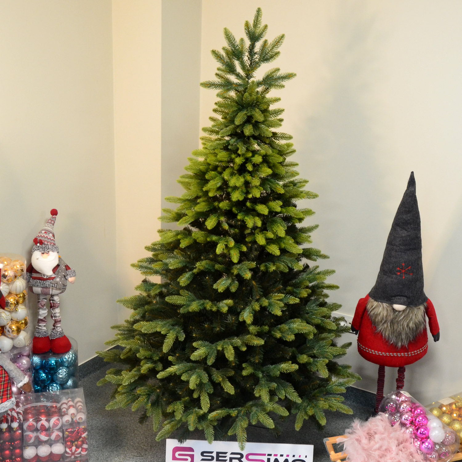 Cu bradul Christmas Deluxe by Sersimo® – un element inseparabil al Craciunului – veti petrece aceasta perioada magica de iarna intr-o aura de bucurie si caldura. Ganditi-va doar cat de frumos vor arata decoratiunile – stralucitoare, presarate cu sclipici, incalzind interiorul. Chiar si oamenii care nu impartasesc entuziasmul de Craciun recunosc ca un brad de Craciun impodobit frumos creeaza o atmosfera aparte. Cel mai mare avantaj al bradului nostru de Craciun este numarul mare de ramuri dens aranjate. Datorita densitatii si elegantei sale captivante, nu necesita prezenta a numeroase decoratiuni, fiind cu adevarat un decor grozav al oricarui interior! Etajul cel mai de jos al pomului de Craciun este la inaltimea potrivita, astfel incat sa puteti pune cu usurinta cadourile de Craciun sub el.