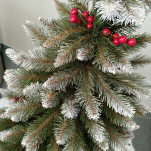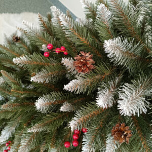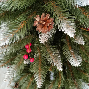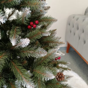 Az erős, tartós PVC fóliából készült tűlevelek rendkívül kellemes tapintásúak. Mivel a karácsonyfa – az igazi fákkal ellentétben – nem hullajtja tűleveleit, nem kell rendszeresen porszívózni a szobát. Ezenkívül a tűlevelek egyenletesen oszlanak el az ágak teljes hosszán, ami sűrű, hézagmentes látványt biztosít.
