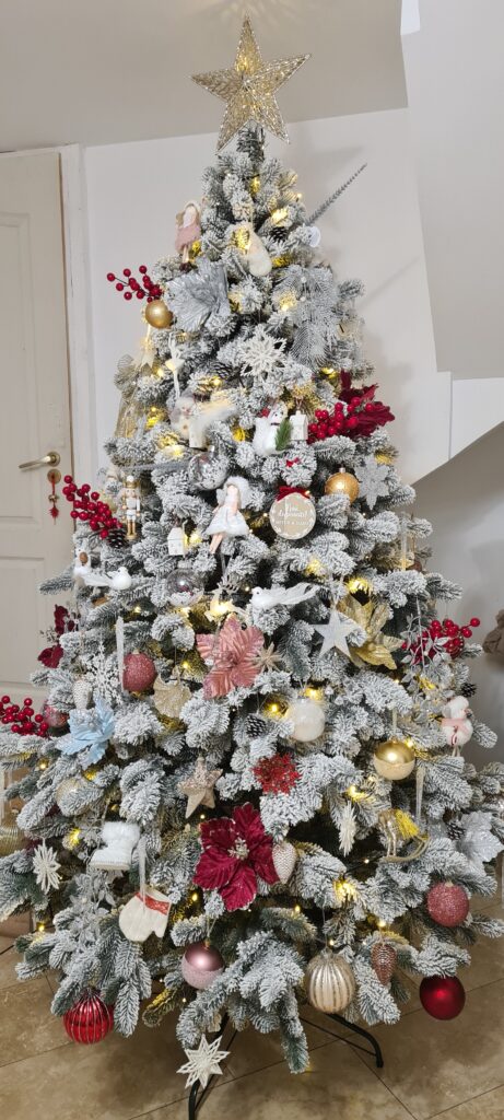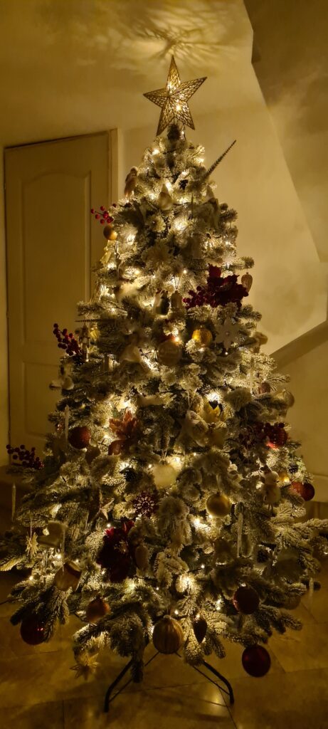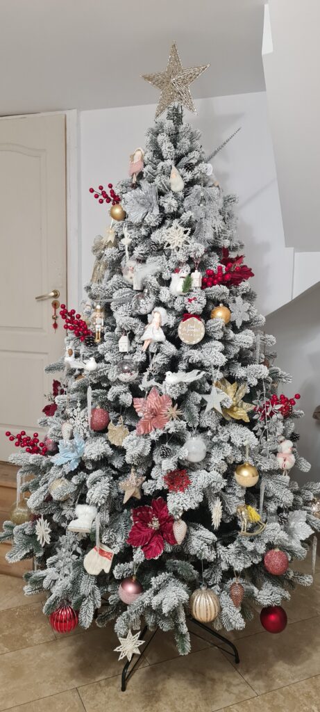 A bemutatott karácsonyfa egyedülálló módon tükrözi a karácsony csodálatos hangulatát – ismerős és szeretett formában –, kiemelve az ünnep melegségét és családias légkörét.