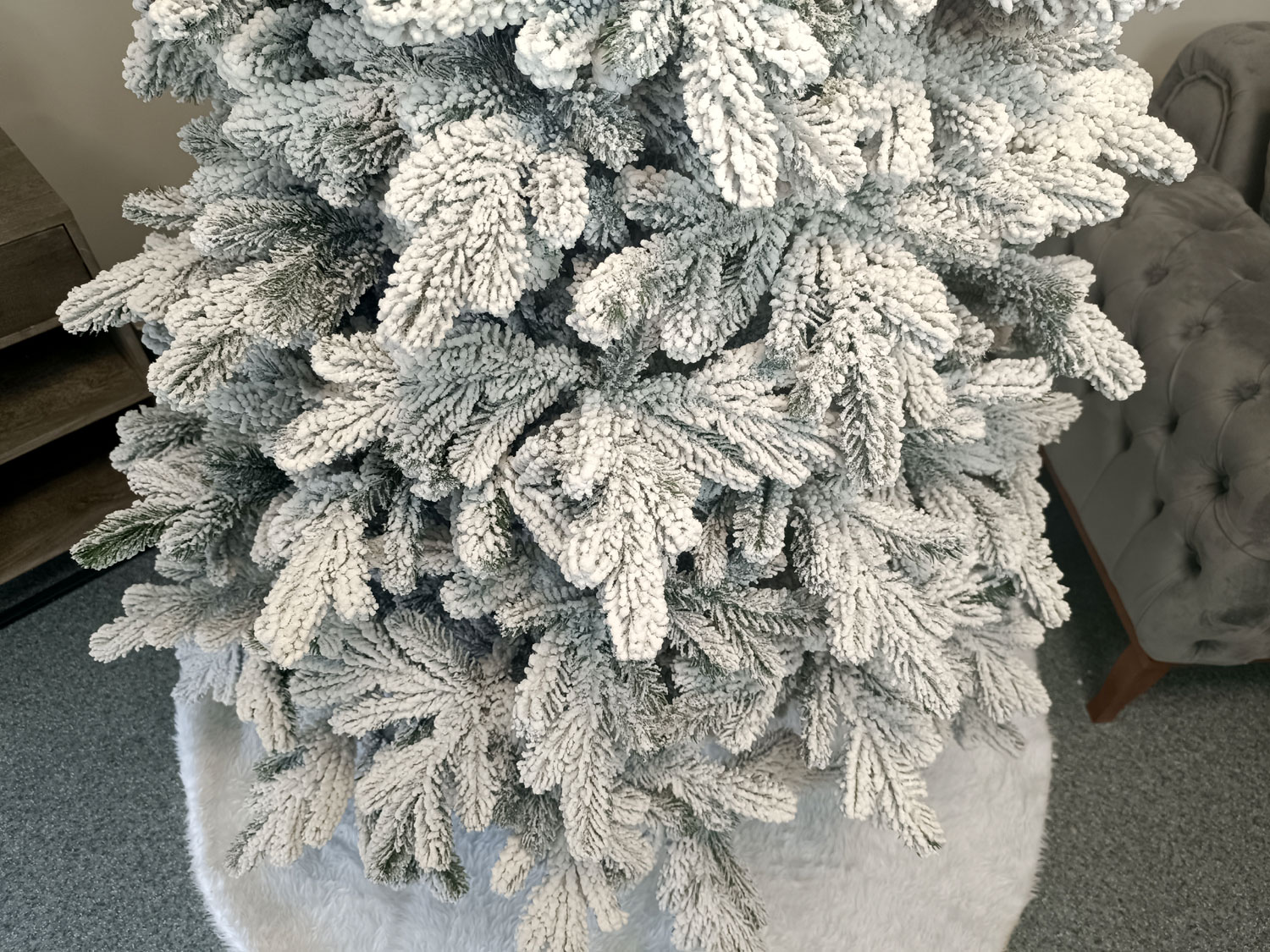 Ezek a karácsonyfák rendkívül élethű megjelenésűek, és szinte megkülönböztethetetlenek a természetes fáktól. Ágaik sűrűn elrendezettek, erősek, és könnyedén megtartják a karácsonyi díszeket. Még díszek nélkül is elegánsan mutatnak, mivel kiváló minőségű anyagokból készültek, és megfelelnek az Európai Unió legmagasabb biztonsági előírásainak.