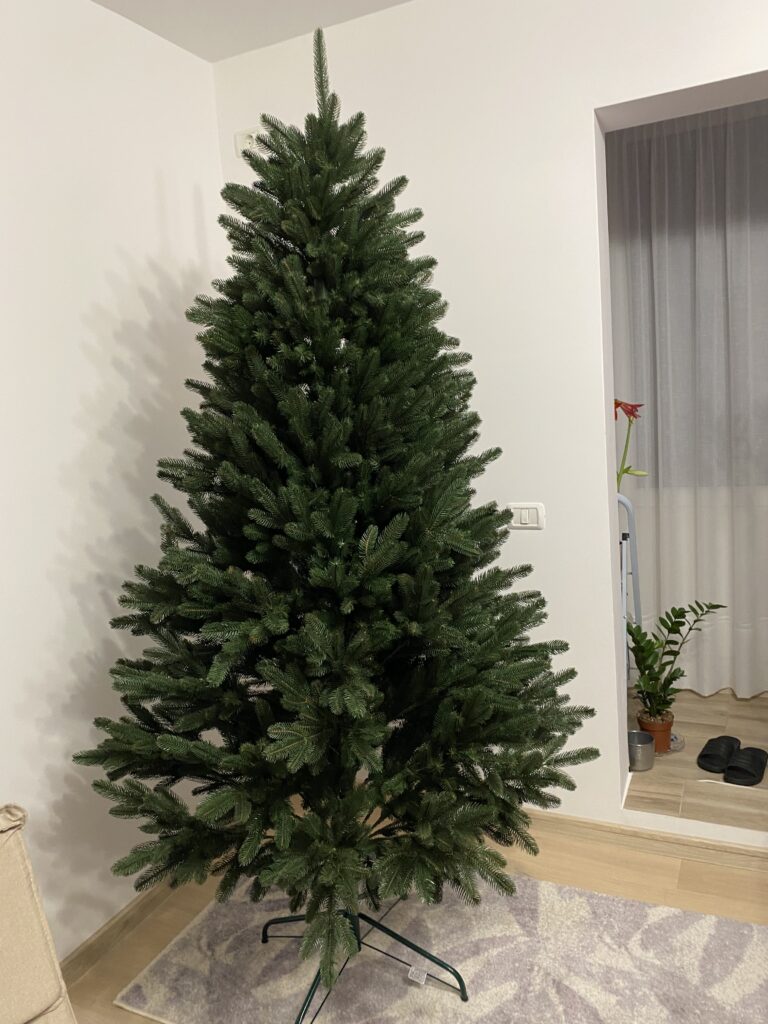 Bradul pare natural datorită crenguțelor 3D. Cu cat este aranjat mai în detaliu, cu atât este mai des. Înălțimea celui din poză este de 210 cm.