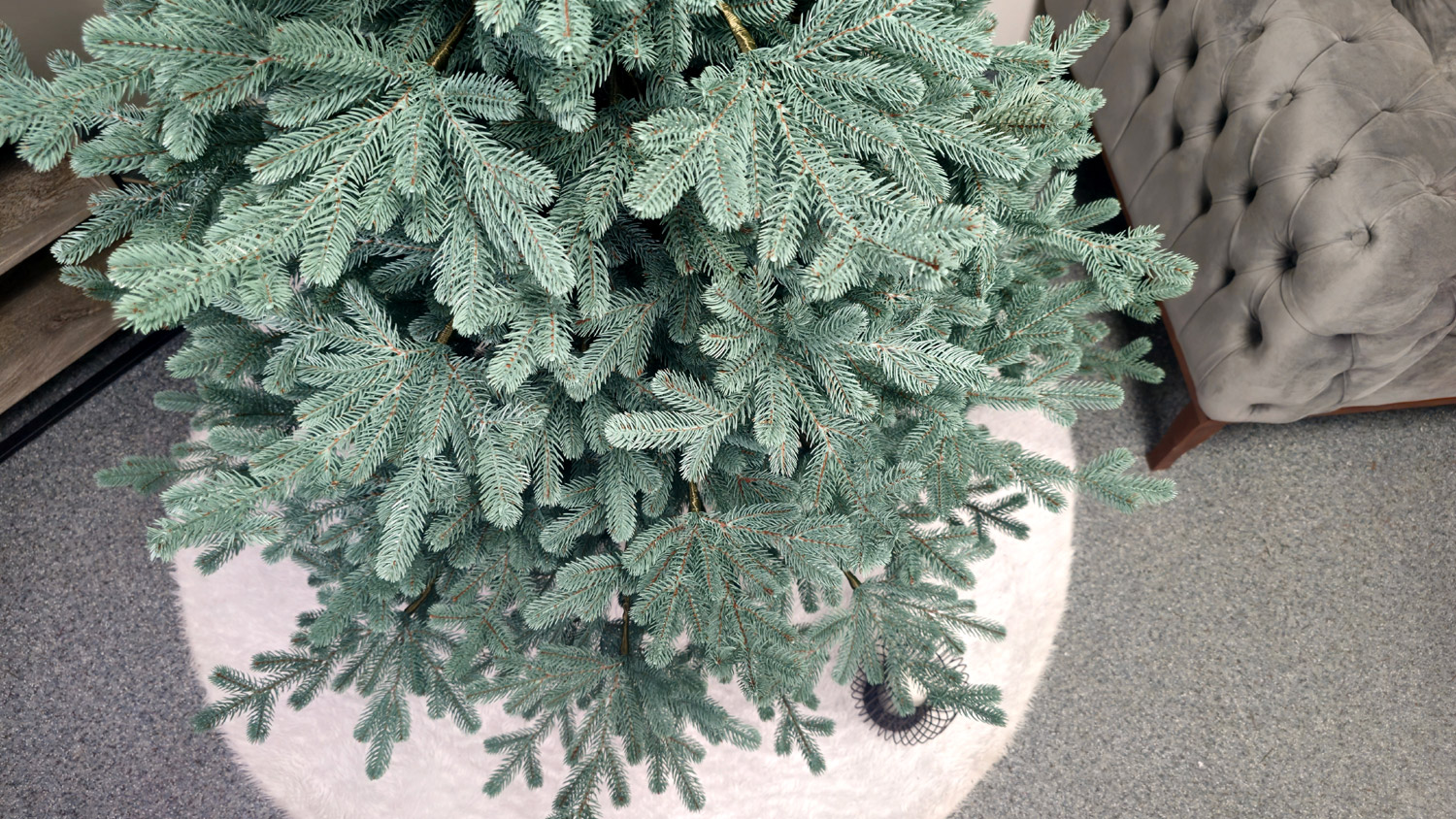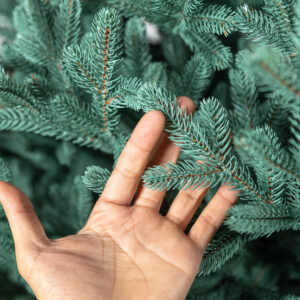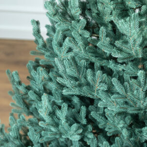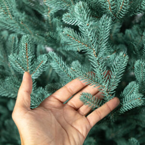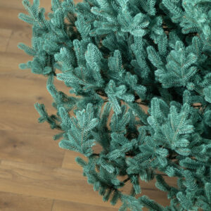 Az ágak könnyen formázhatók különböző irányokba, így természetes, egyedi megjelenést adhat a fának. Az egyes gallyak élethű, változatos végekkel rendelkeznek – egyik sem tűnik mesterségesen vágottnak vagy szabálytalannak. Színük rendkívül valósághűen utánozza a természetes fenyőtűk árnyalatát, és az idő múlásával sem fakul meg.