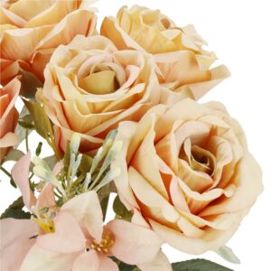 Mű poliészter virágcsokor, 9 rózsa, 40 cm, rózsaszín