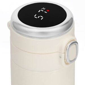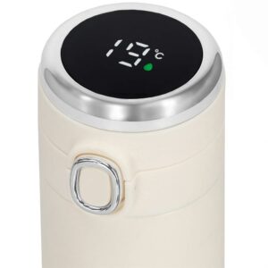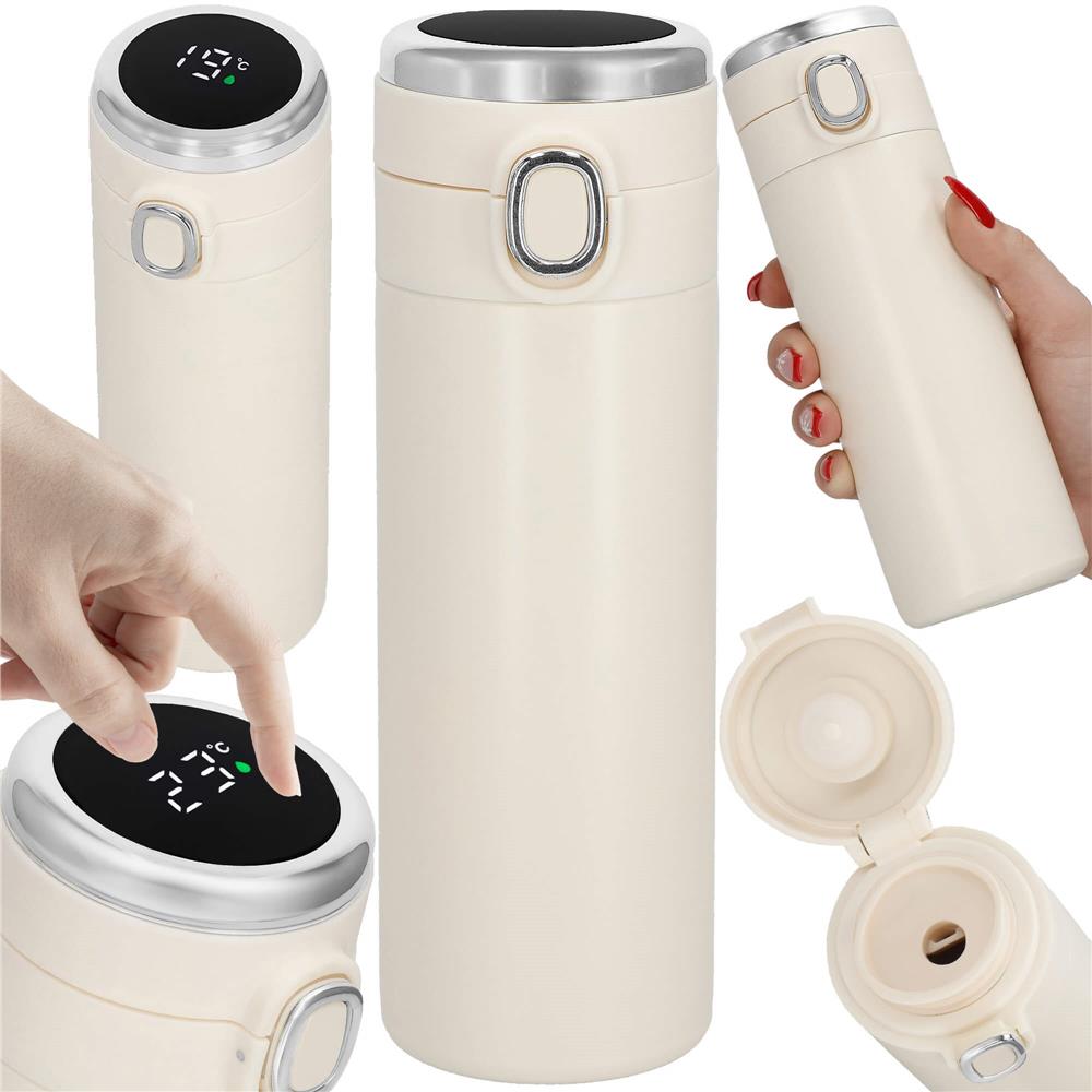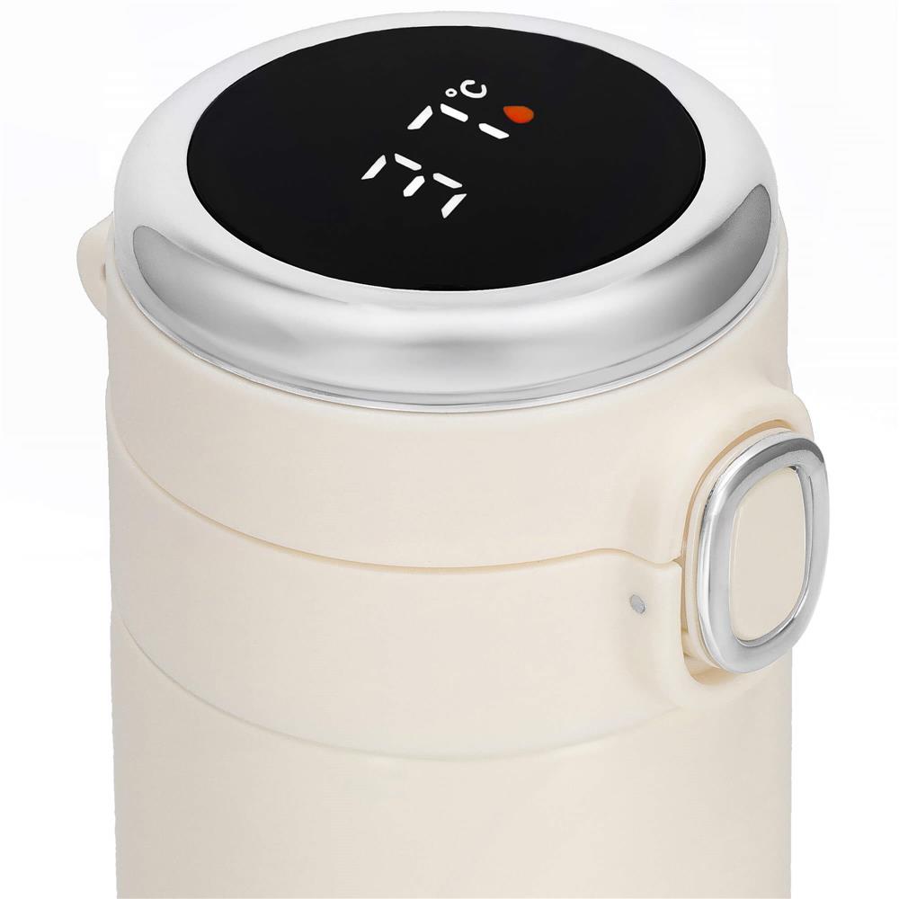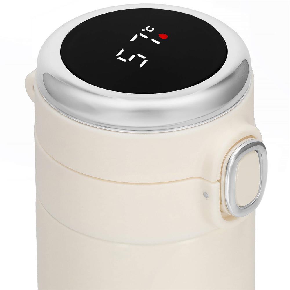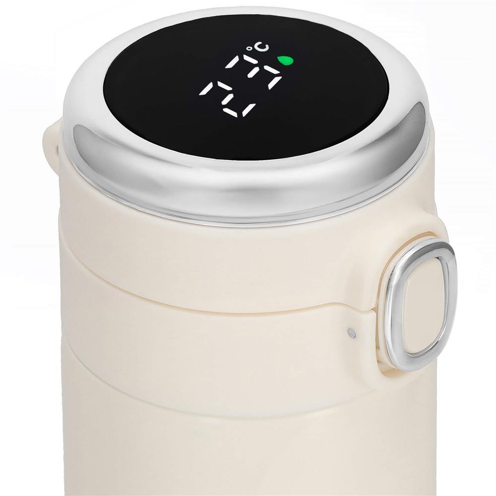 Okos termosz bögre, rozsdamentes acél, LED kijelző, hőmérséklet kijelző, 420ml, 20cm, krém
