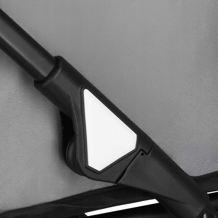 - A babakocsi hálóelemekkel van felszerelve, amelyek biztosítják a levegő folyamatos hozzáférését.