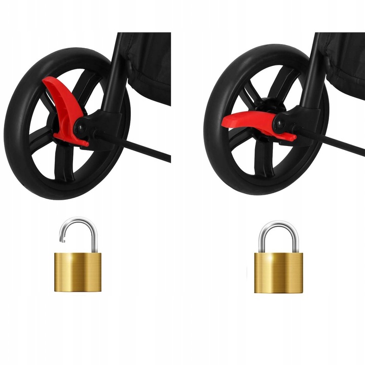 A babakocsi kerekeit fékező rendszerrel látták el, így nem kell attól tartania, hogy lejtőn ellenőrizetlenül megy. Egyszerűen használja a féket a kerekek rögzítéséhez, és megakadályozza, hogy azok maguktól elmozduljanak.