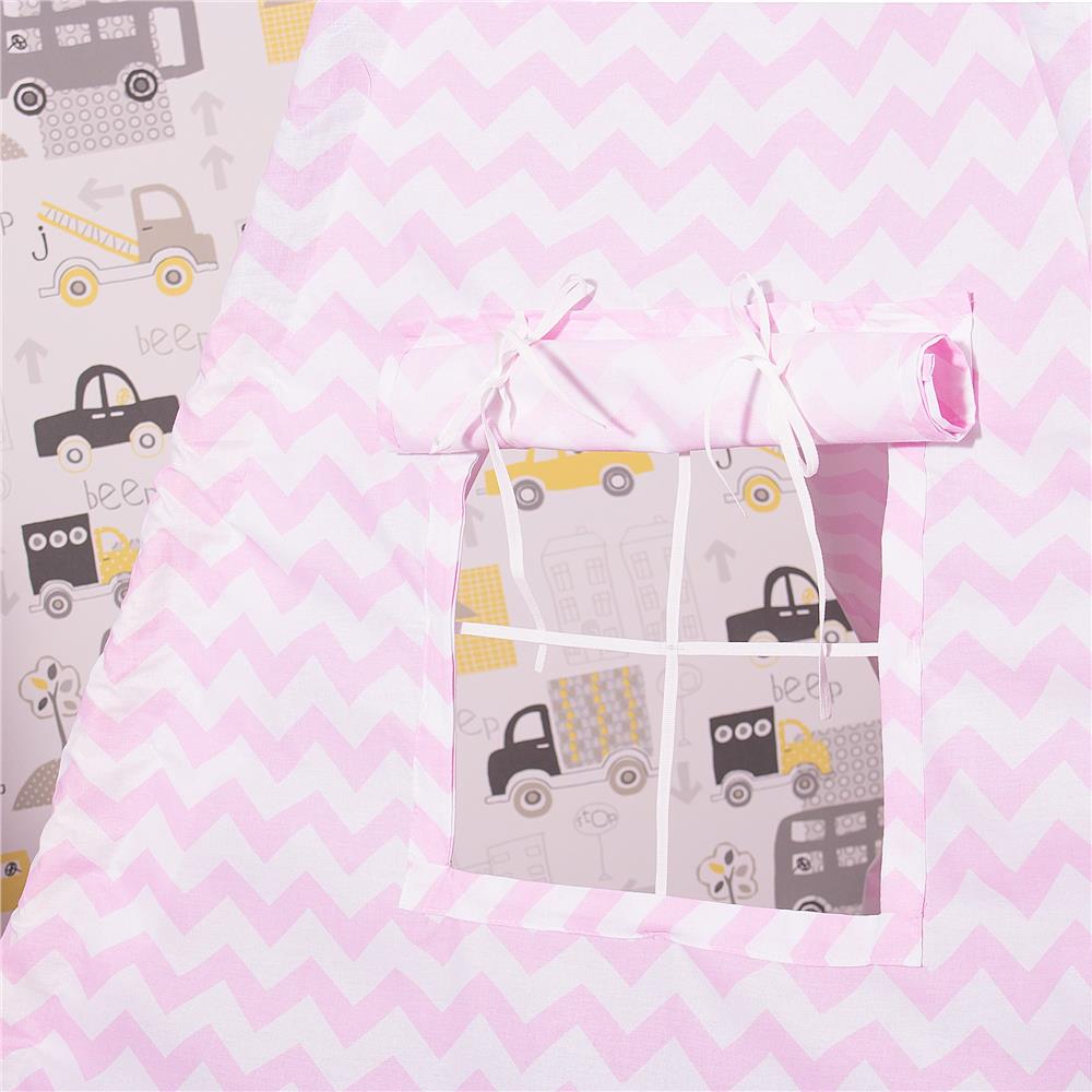 A keret erős fenyőfából készült. A pálcák alapos polírozása biztosítja a biztonságot az összeszerelés és az azt követő játék során. A sátor össze- és széthajtása rendkívül egyszerű: erős csatlakozókkal köss össze két rudat, majd helyezd be az anyagalagutakba. Később elég megkötni a botokat. Ezzel a gyors és egyszerű módon új kiegészítővel szerelheti fel gyermekszobáját.
