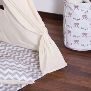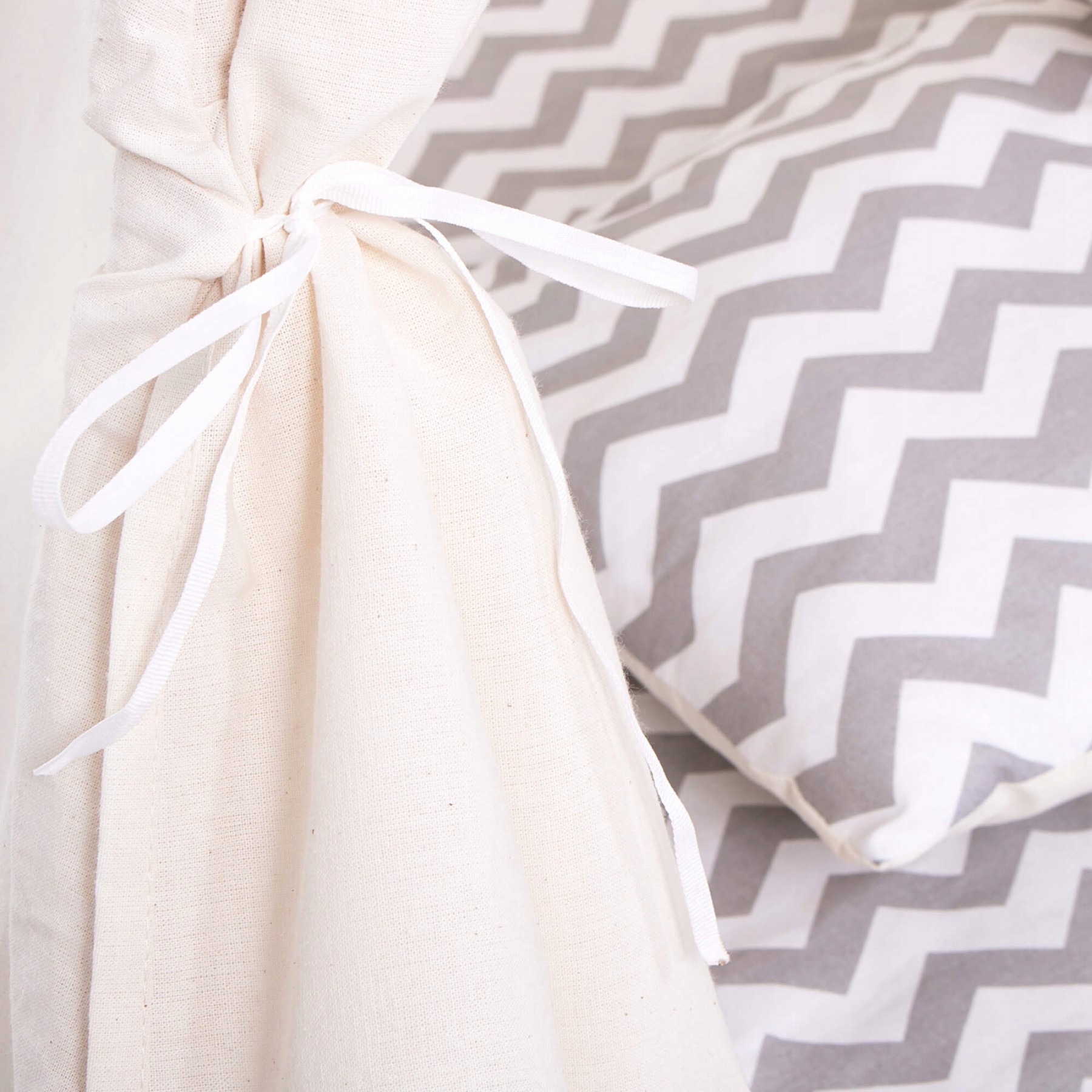 A keret erős fenyőfából készült. A pálcák alapos polírozása biztosítja a biztonságot az összeszerelés és az azt követő játék során. A sátor össze- és széthajtása rendkívül egyszerű: erős csatlakozókkal köss össze két rudat, majd helyezd be az anyagalagutakba. Később elég összekötni a rudakat, és belehelyezni a matracot és a párnákat. Ezzel a gyors és egyszerű módon új kiegészítővel szerelheti fel gyermekszobáját.