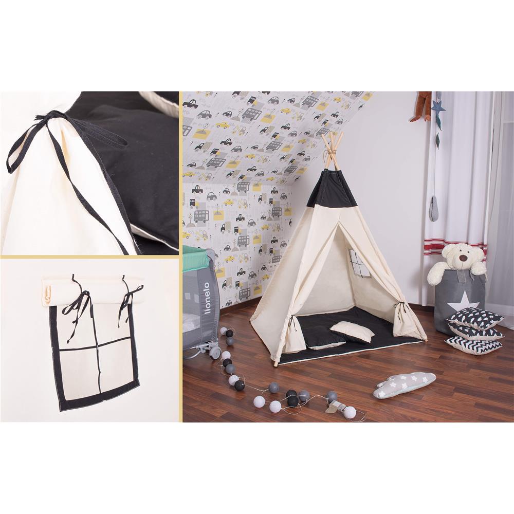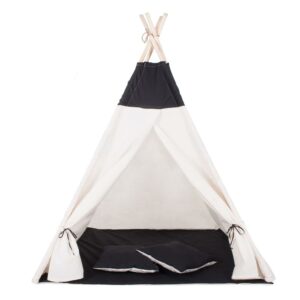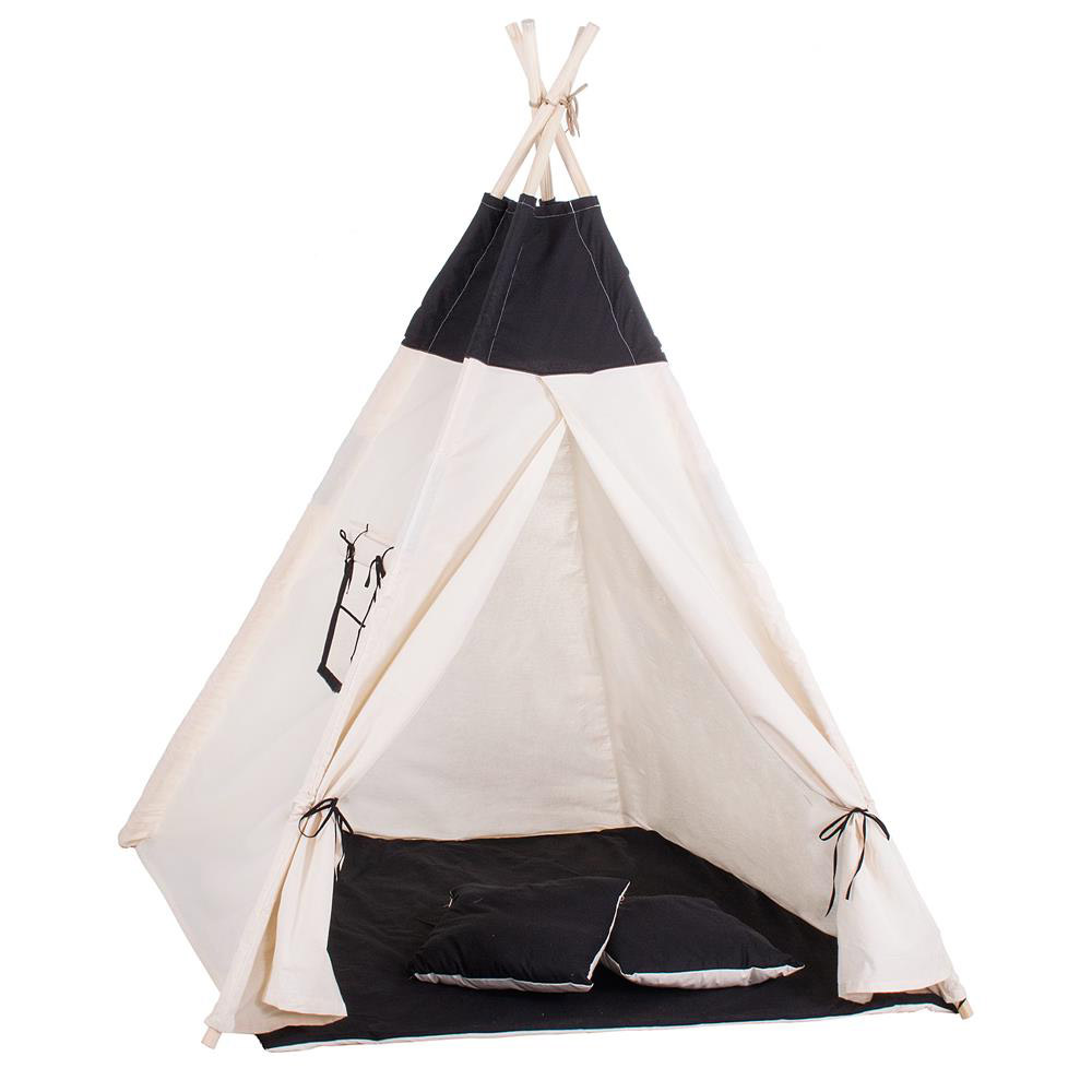 Teepee indiánsátor gyerekeknek ablakkal, vastag szőnyeggel és 2 párnával, fekete-fehér