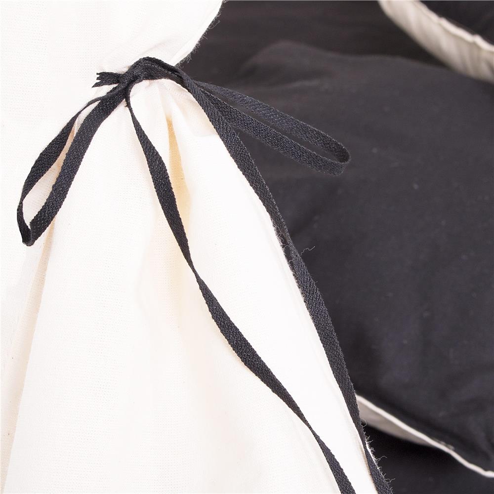 A keret erős fenyőfából készült. A pálcák alapos polírozása biztosítja a biztonságot az összeszerelés és az azt követő játék során. A sátor össze- és széthajtása rendkívül egyszerű: erős csatlakozókkal köss össze két rudat, majd helyezd be az anyagalagutakba. Később elég összekötni a rudakat, és belehelyezni a matracot és a párnákat. Ezzel a gyors és egyszerű módon új kiegészítővel szerelheti fel gyermekszobáját.