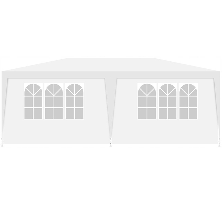 Nu va puteti increde in prognoza meteo, dar va puteti baza pe acest cort. Daca se apropie o petrecere in gradina, nu aveti de ce sa va temeti de soare sau de o ploaie usoara. Acestea vor ricosa direct pe cort. Nu numai bufetul dar si oaspetii sunt pe maini bune in acest cort. Bucurati-va de o petrecere reusita in gradina, indiferent de vreme!