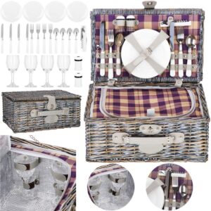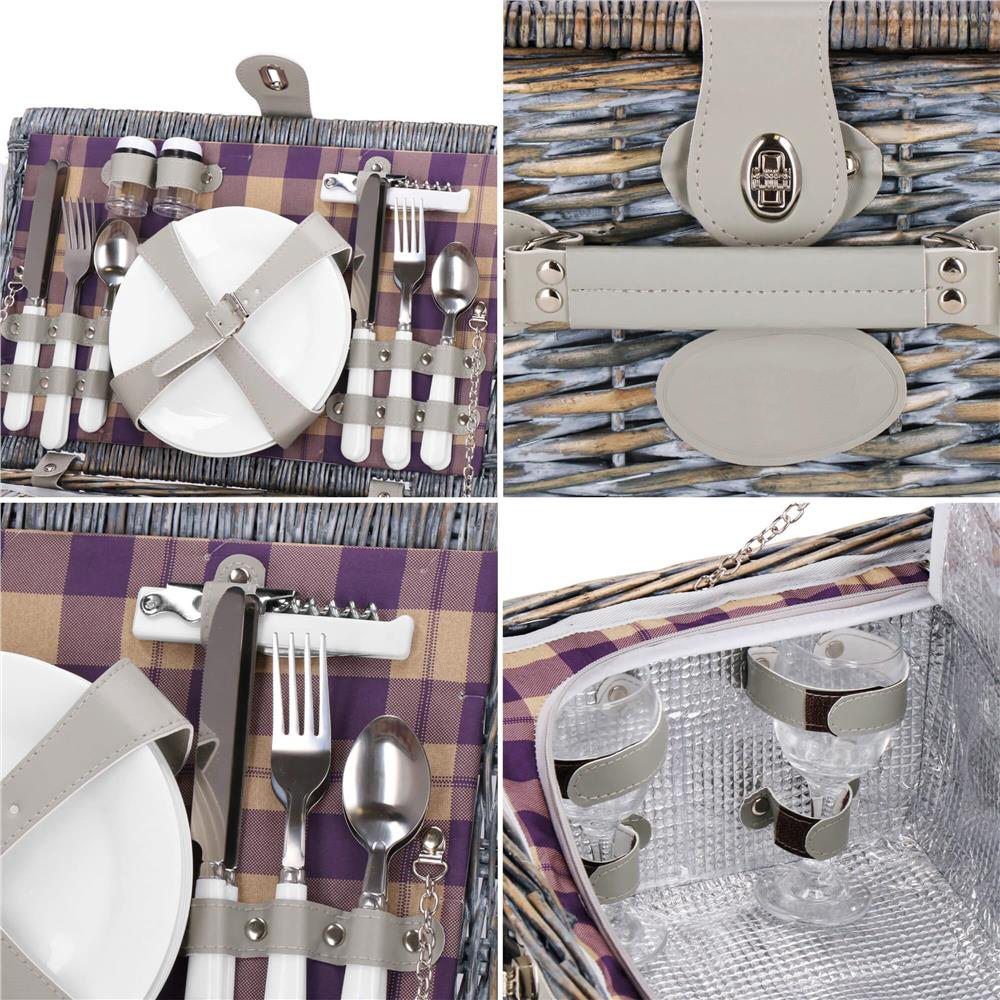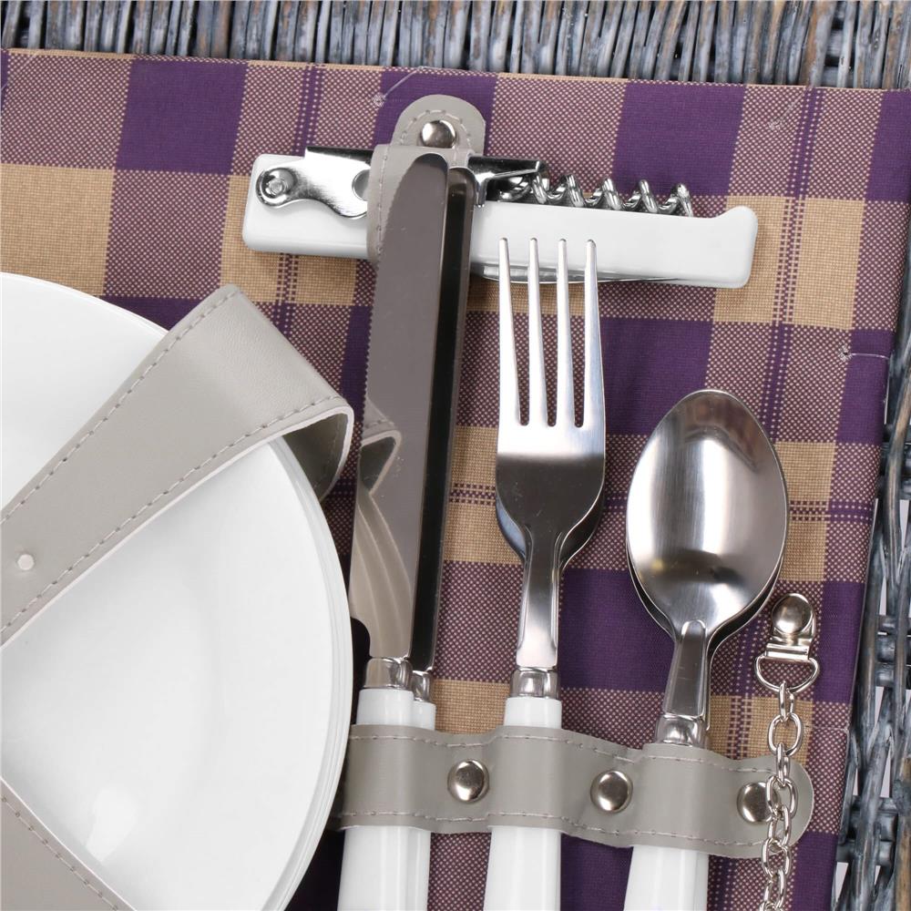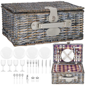 A piknikkosár minden tartozékkal fel van szerelve, ami ahhoz szükséges, hogy a szabadban étkezzen családjával és barátaival. Négy személyes evőeszközt, tányért és poharat találsz! Nem feledkeztünk meg olyan hasznos apróságokról sem, mint a dugóhúzó-nyitó, valamint a só- és borstartályok. Többé nem kell emlékeznie az eldobható kiegészítők vásárlására! Berendezéseink tartósak és újrafelhasználhatóak.