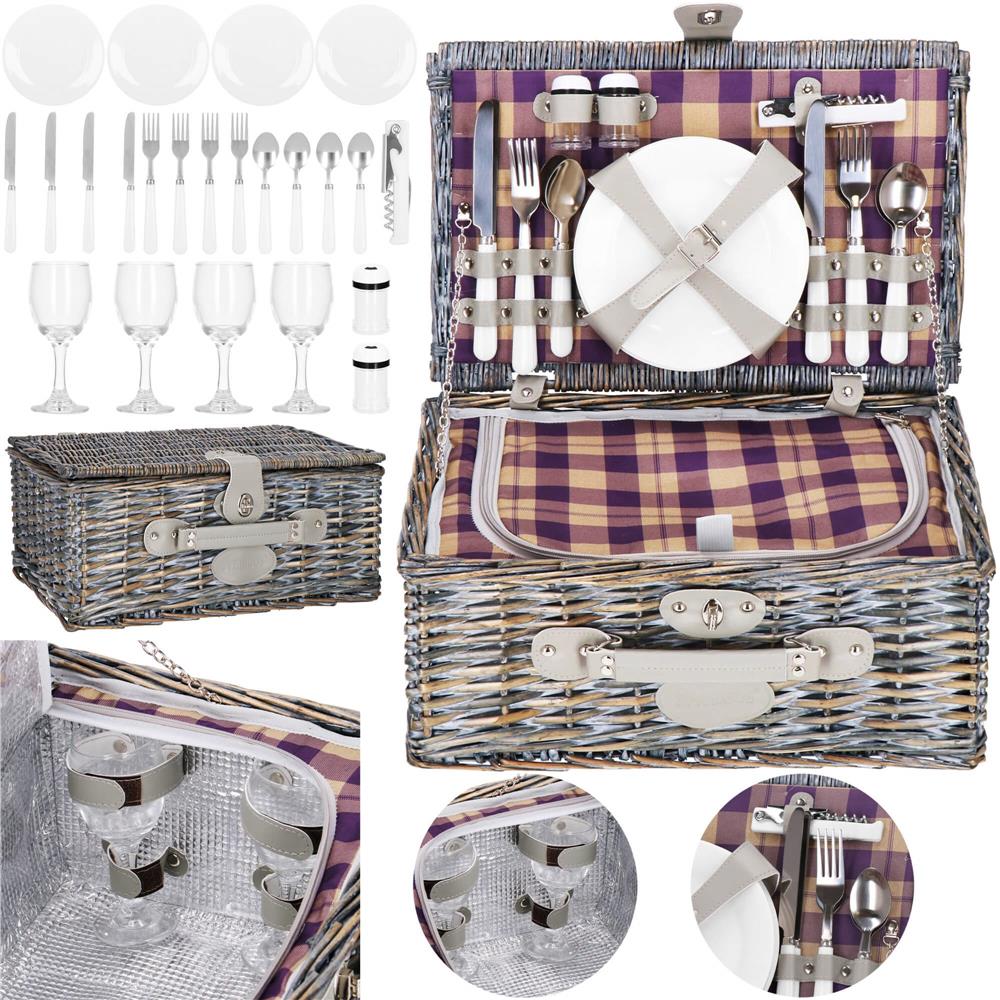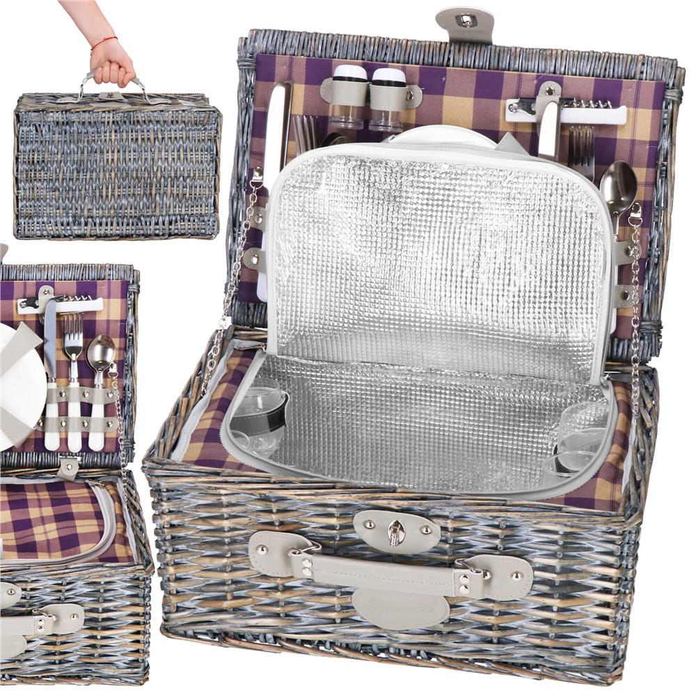 A rendkívül tágas, kiegészítőkkel ellátott piknikkosár fantasztikus megoldás meleg és hideg napokra egyaránt. Hasznos lesz városon kívüli kirándulásokhoz, tengerparti vagy hegyi kirándulásokhoz. Hőszigetelő rétegének köszönhetően sokáig meleg marad. A megerősített fonott konstrukció és a fogantyú kidolgozása biztosítja a termékek biztonságos szállítását.