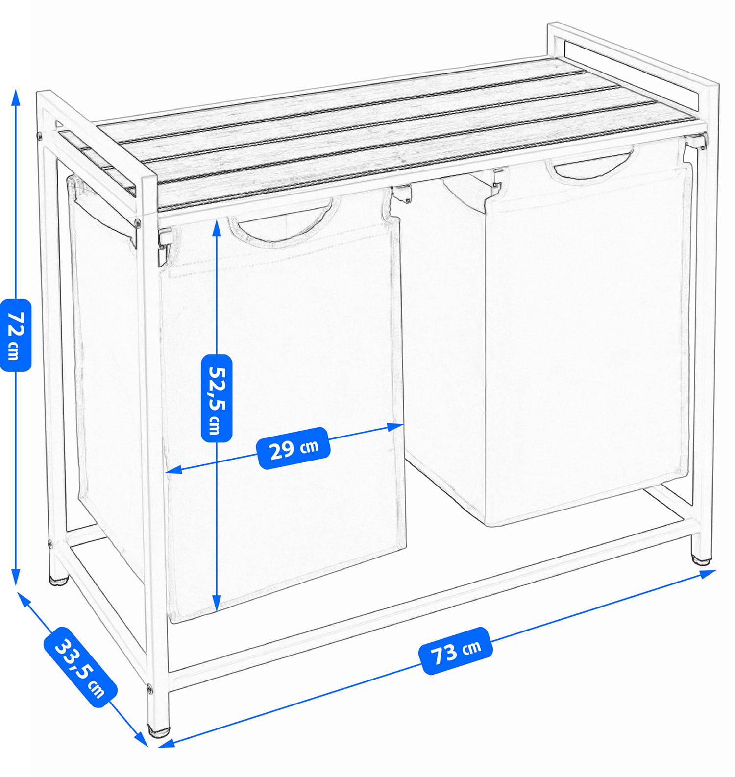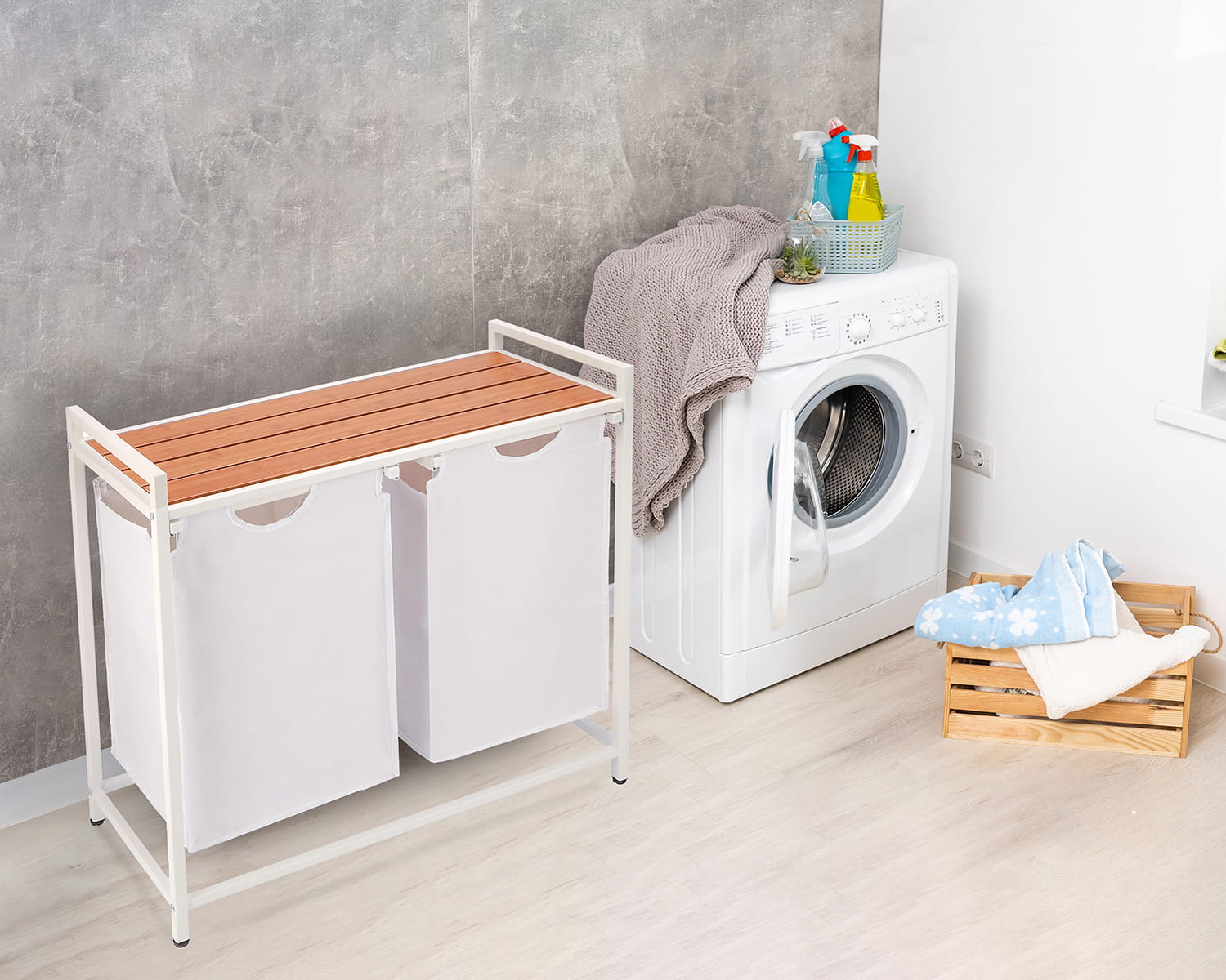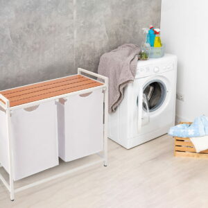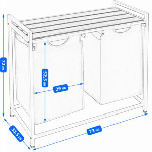 Cosul de rufe cu doua compartimente, usor, este o optiune excelenta pentru a completa o baie moderna. Nu numai ca produsul arata foarte impresionant si modern , dar este, de asemenea, o completare practica si functionala a interiorului, care va va facilita cu siguranta treburile casnice zilnice. Fabricat din material durabil pentru o utilizare de lunga durata. Va gazdui o cantitate mare de hain, mentinand camera de spalat sau baia ordonata.
