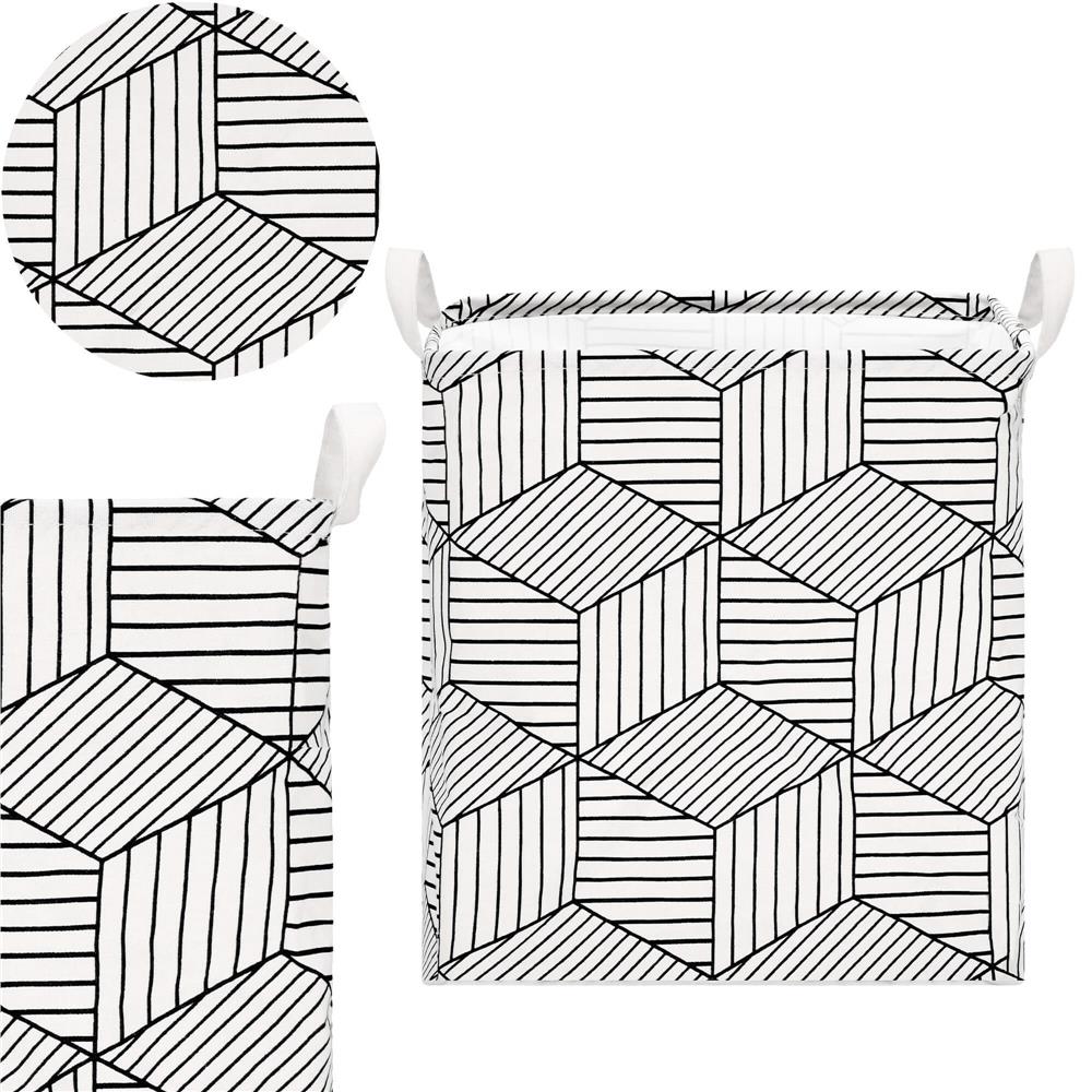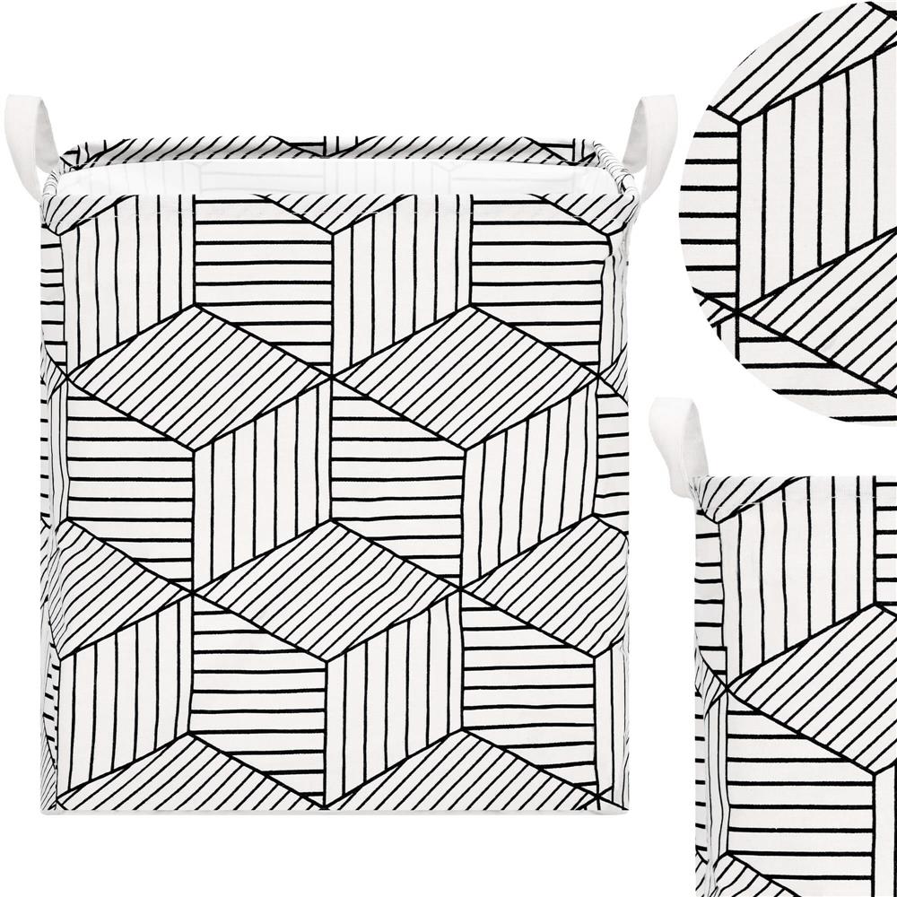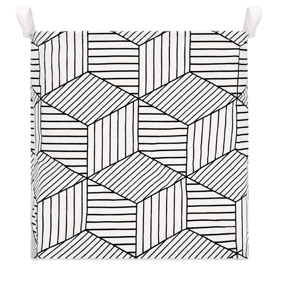 Ruha- vagy játéktároló kosár, 40x35x25cm, pamut és lenvászon, 35 l, fehér és fekete