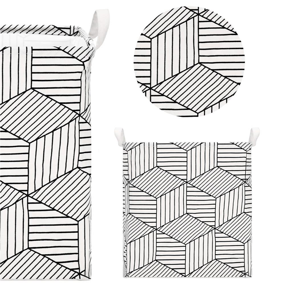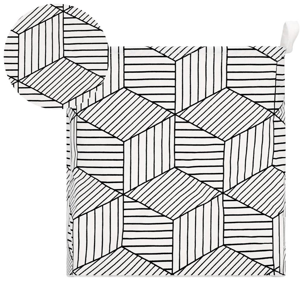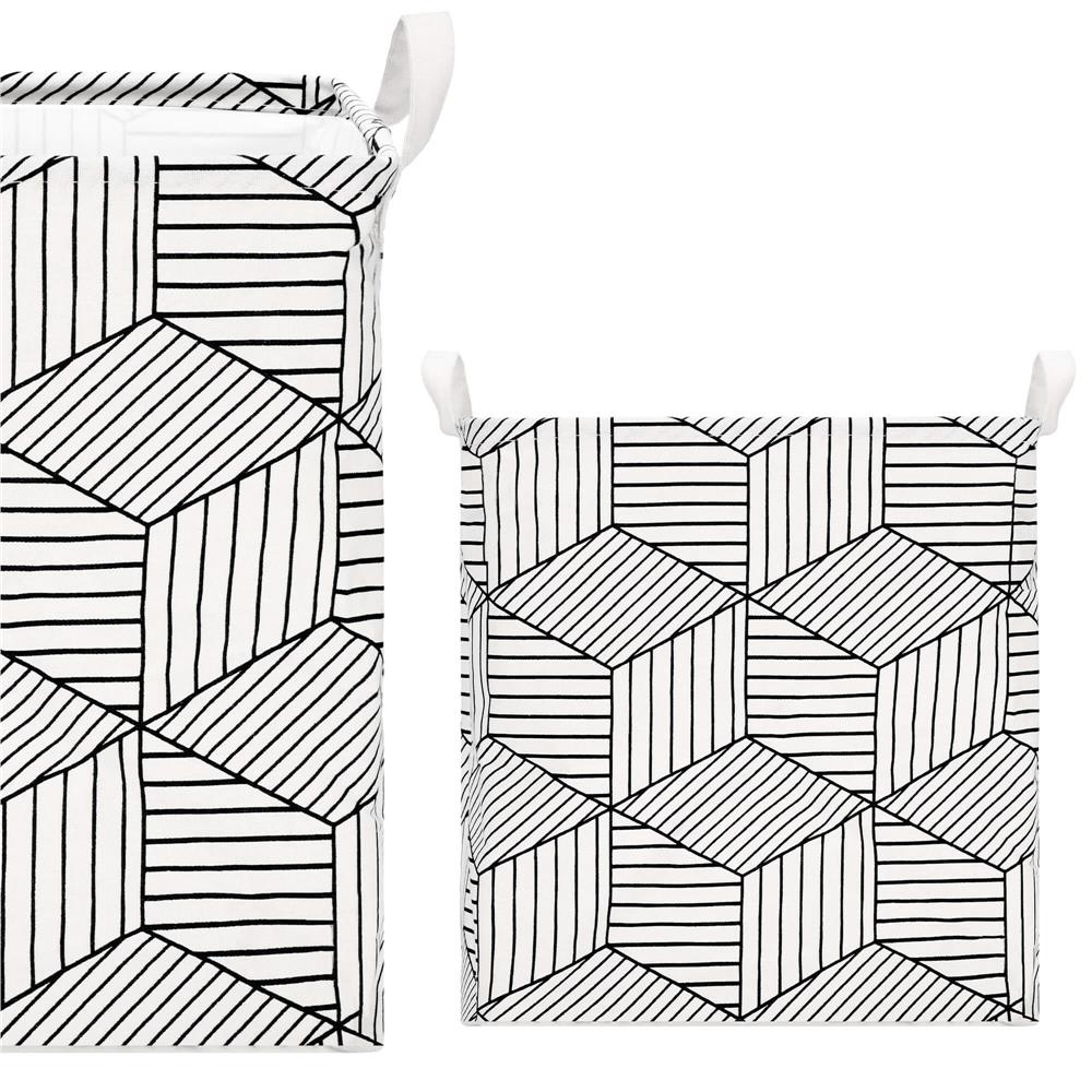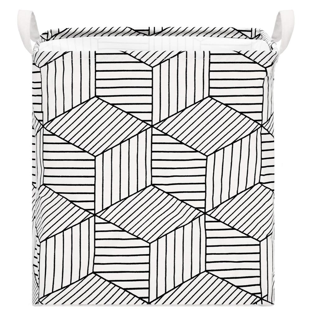 Ruha- vagy játéktároló kosár, 40x35x25cm, pamut és lenvászon, 35 l, fehér és fekete
