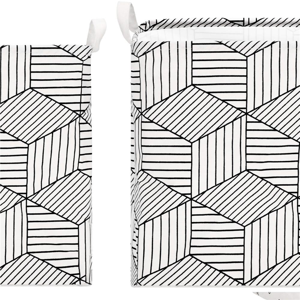 Ruha- vagy játéktároló kosár, 40x35x25cm, pamut és lenvászon, 35 l, fehér és fekete termékről 1 értékelés