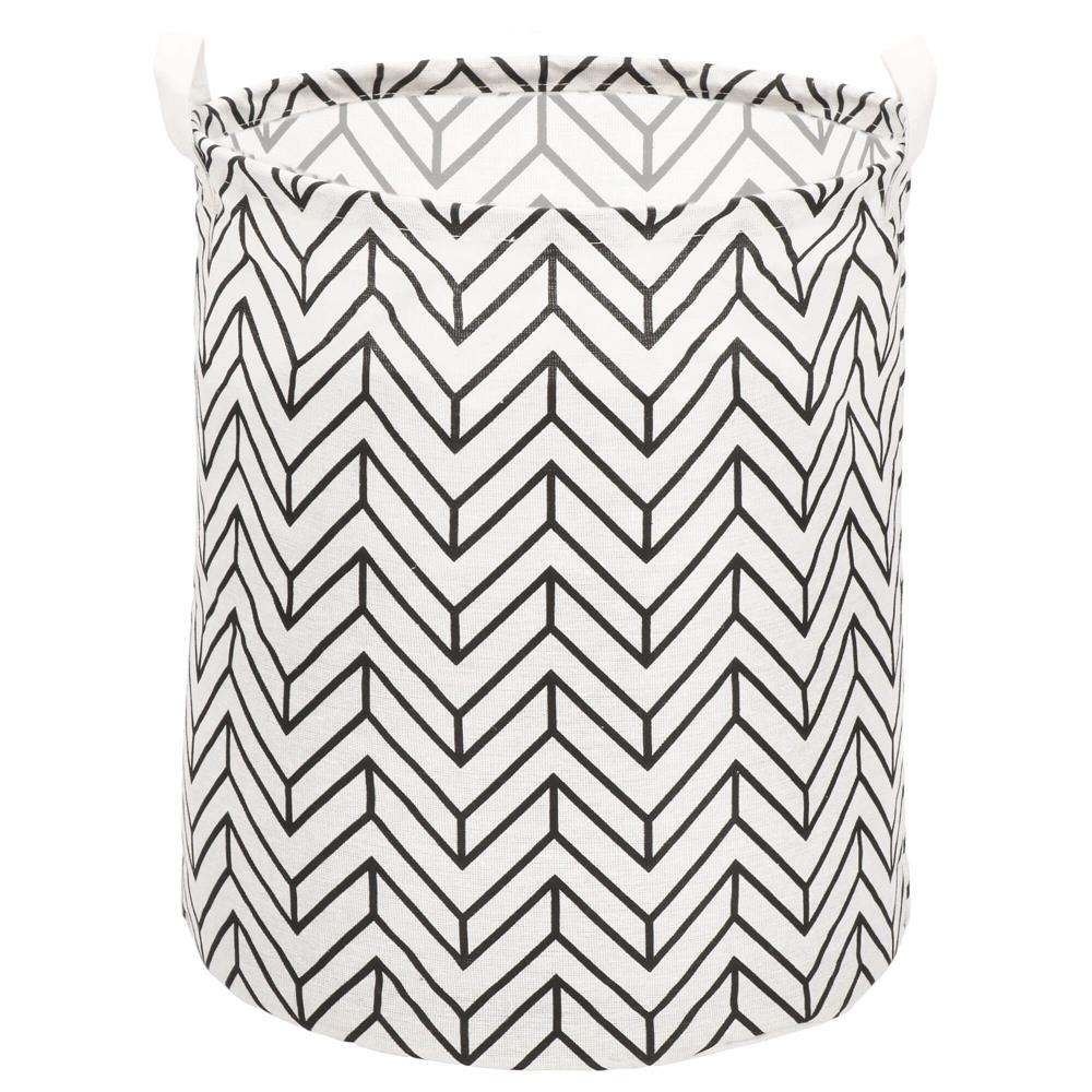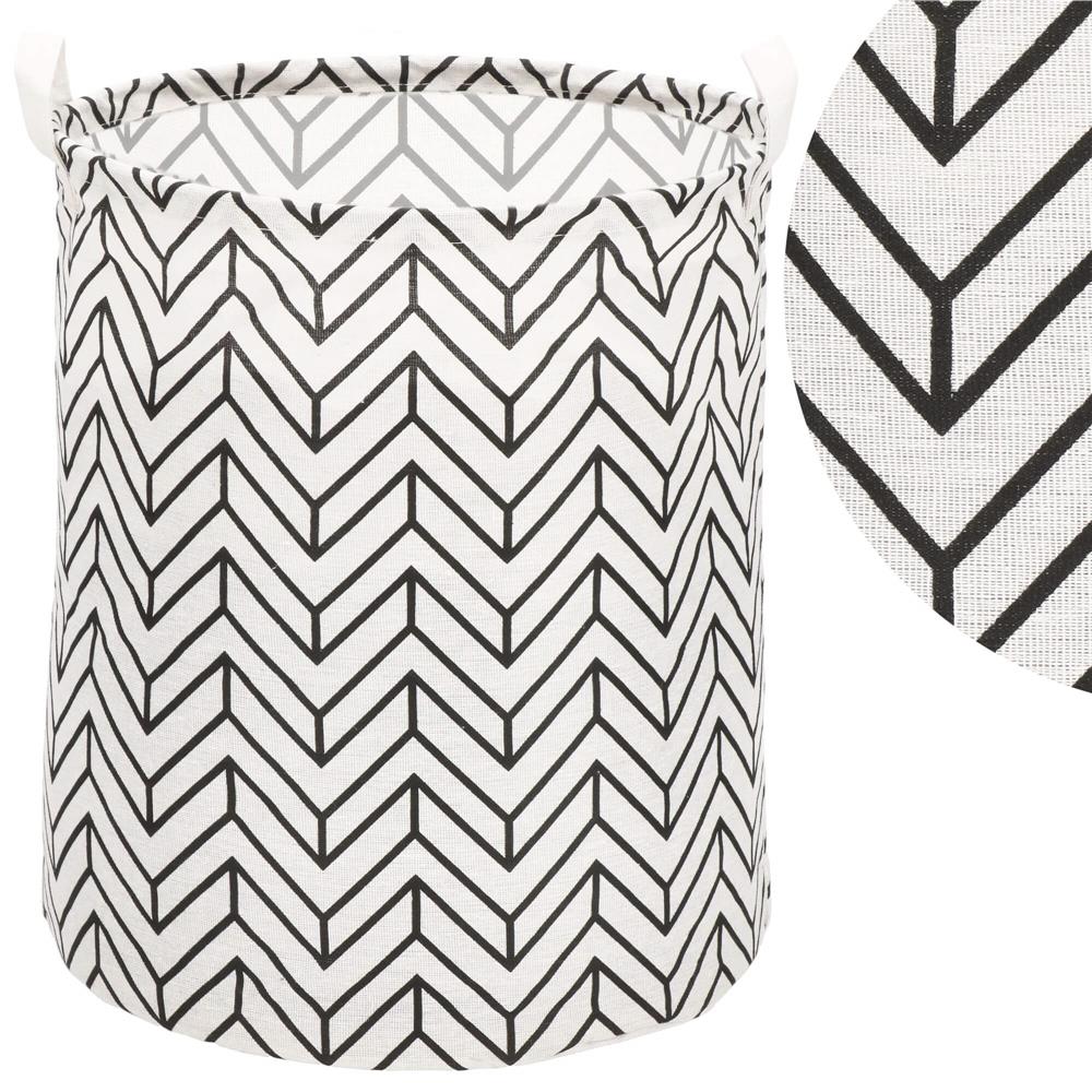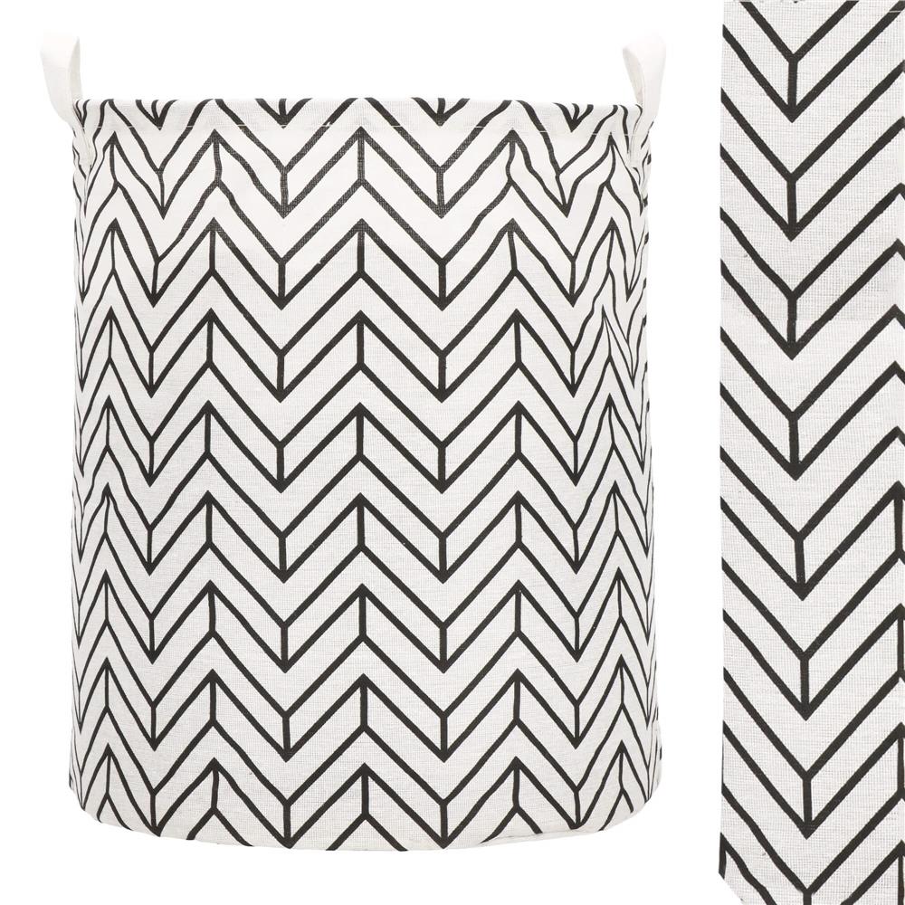 Ruha- vagy játéktároló kosár, 45×35 cm, pamut és lenvászon, 55 l, fekete-fehér