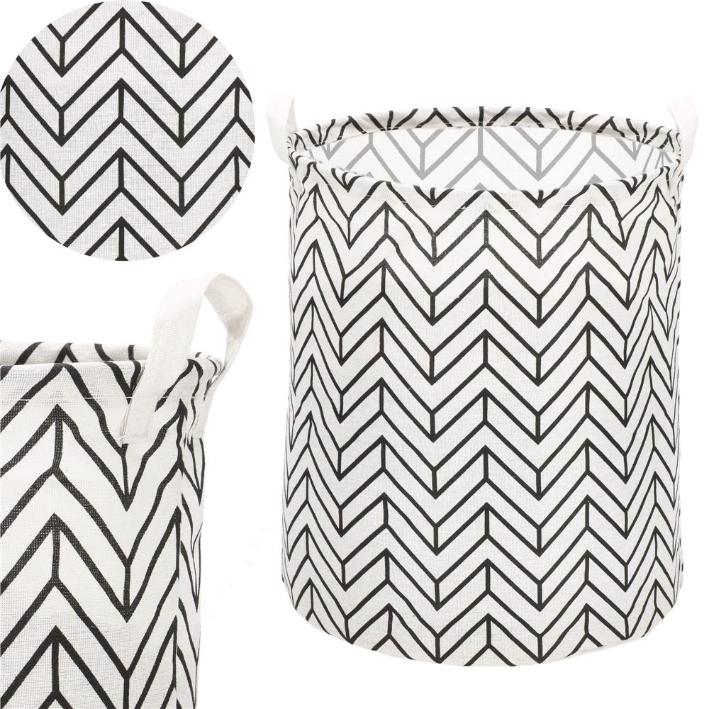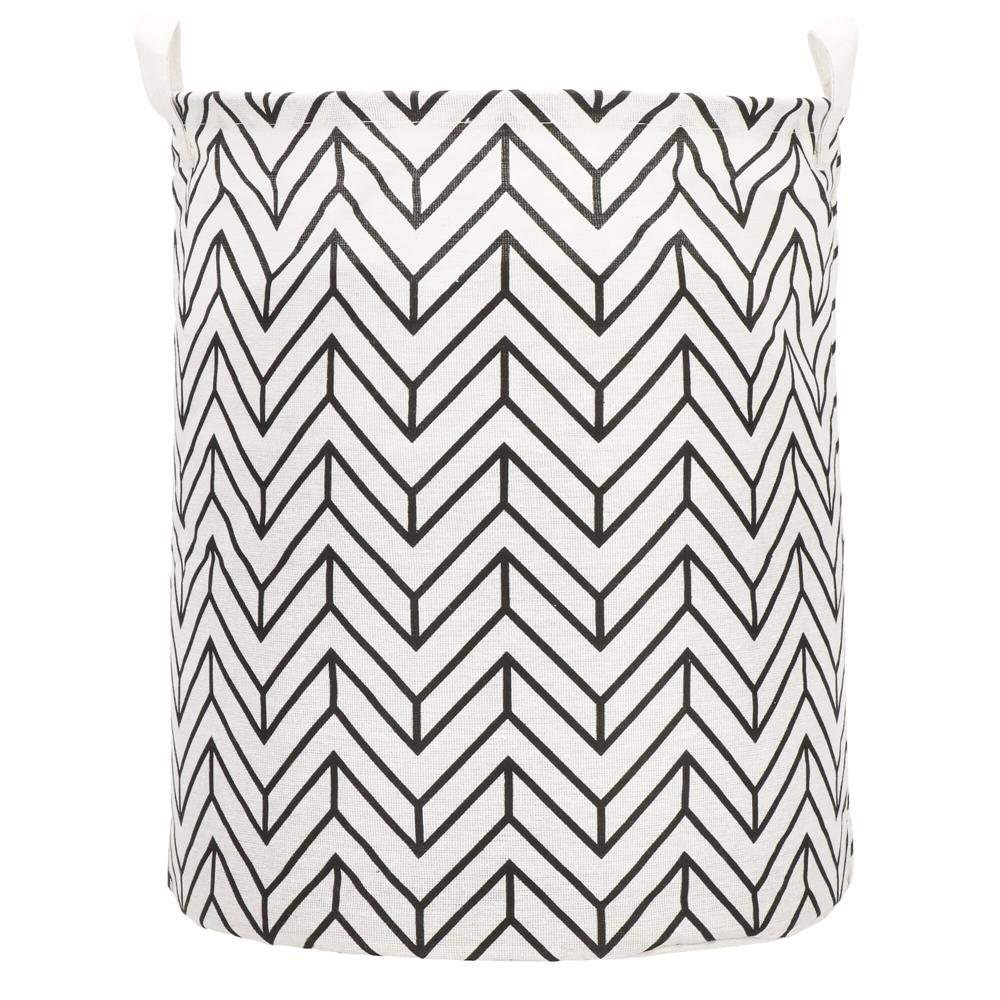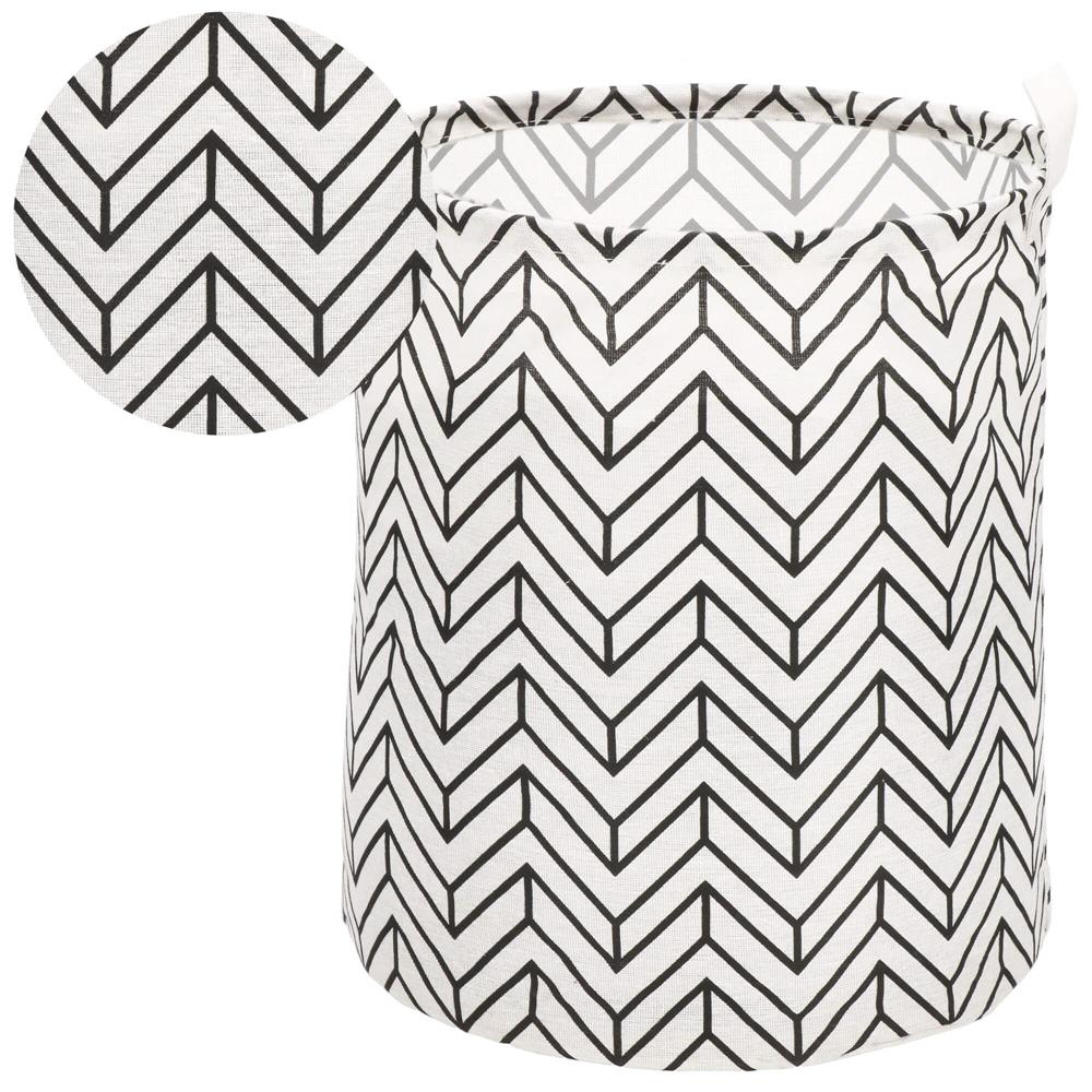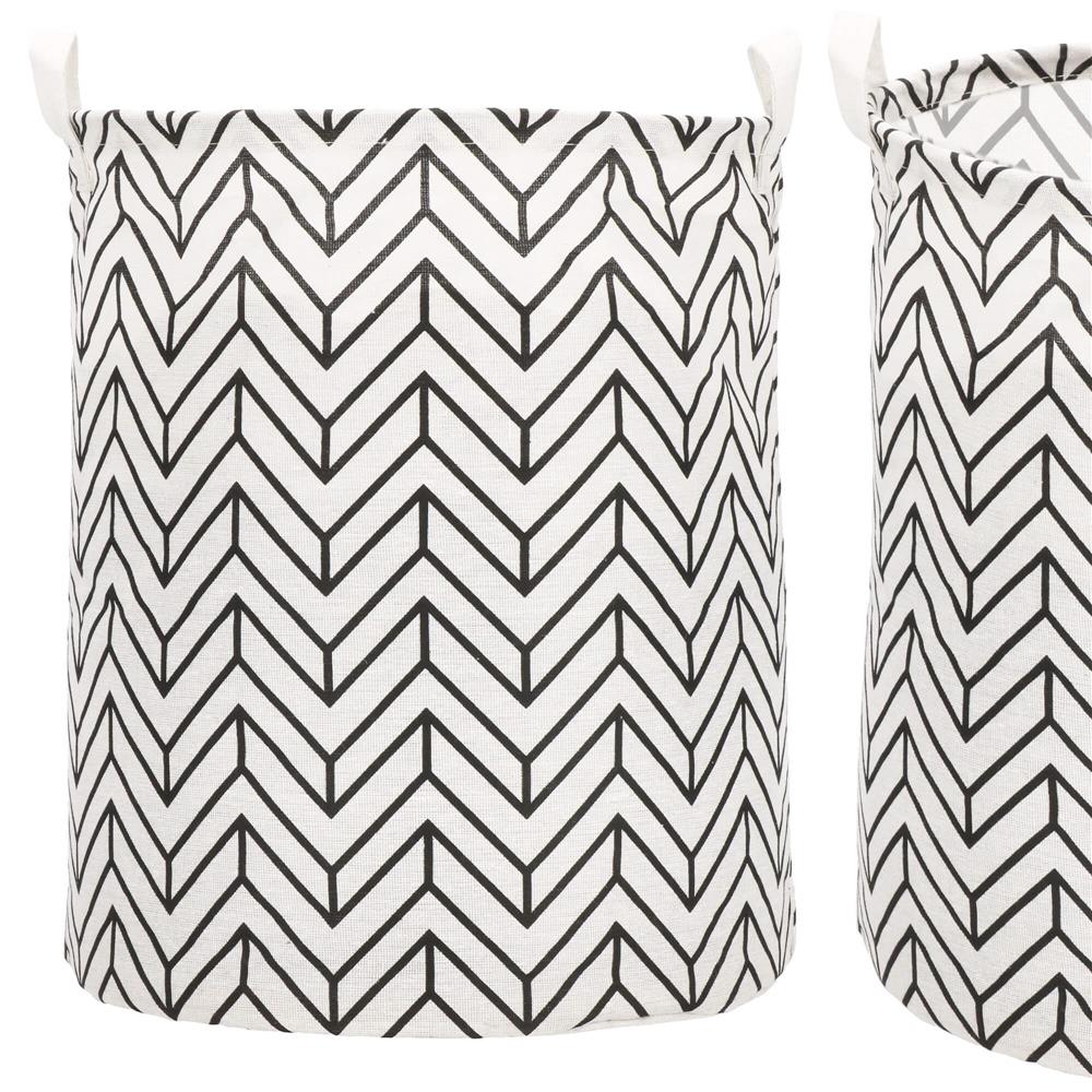 Ruha- vagy játéktároló kosár, 45×35 cm, pamut és lenvászon, 55 l, fekete-fehér
