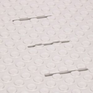 Grosimea spumei este de pana la 2 cm , ceea ce la randul sau garanteaza eficienta si va face ca covorasul sa isi indeplineasca efectiv functia si sa raspunda asteptarilor noastre. Grosimea covorului contribuie, de asemenea, la rezistenta si soliditatea ridicata, ceea ce se traduce prin durabilitatea sa mai mare. Suprafata covorului va permite sa plasati cele mai multe masini de spalat standard . O suprafata de rulare speciala antiderapanta asigura ca masina de spalat nu se va misca pe sol in timpul rotirii si ca obiectele culcate nu se vor misca sau cadea.