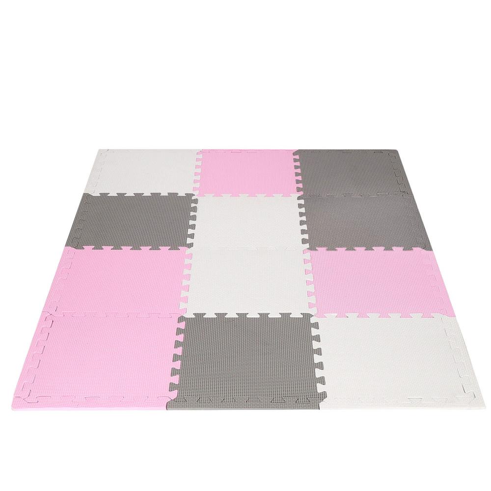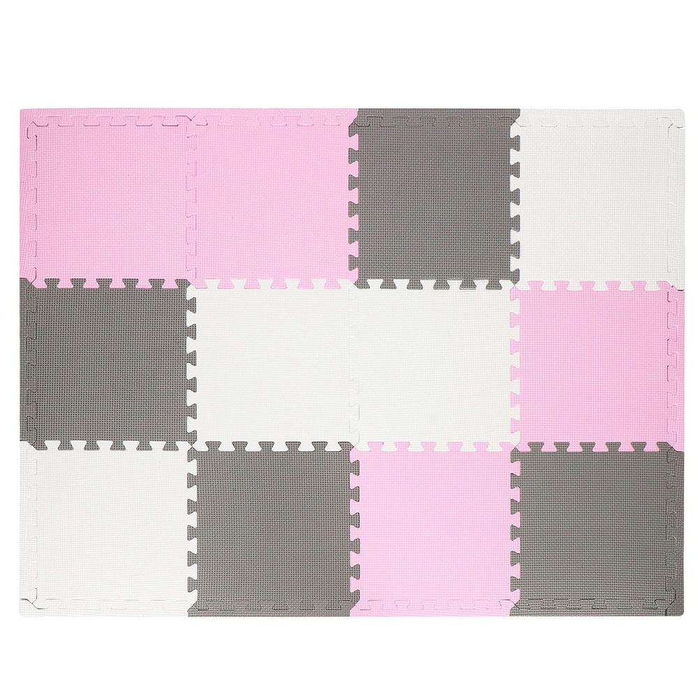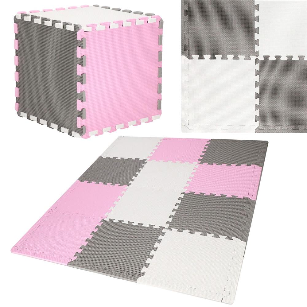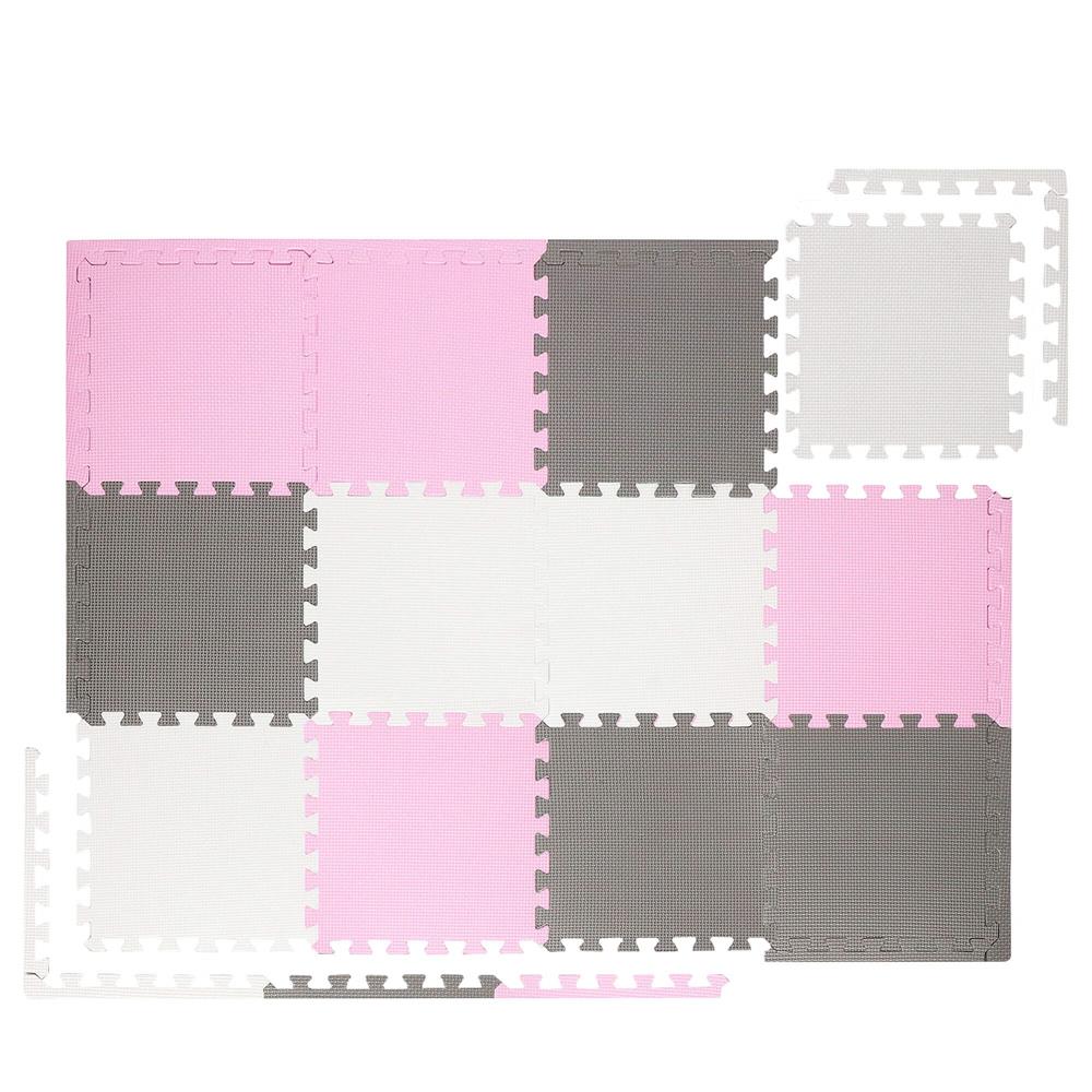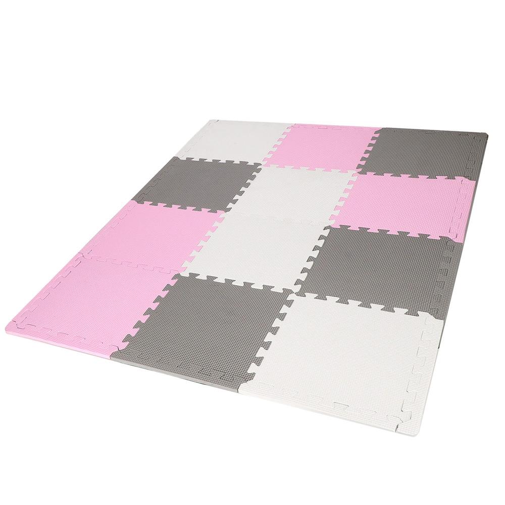 Covor din spuma pentru copii, tip puzzle forme, 26 piese, termoizolant, 118×90 cm, gri roz