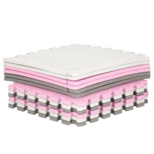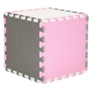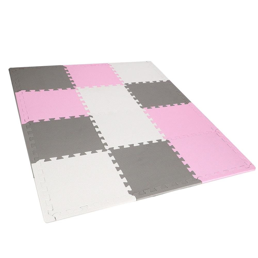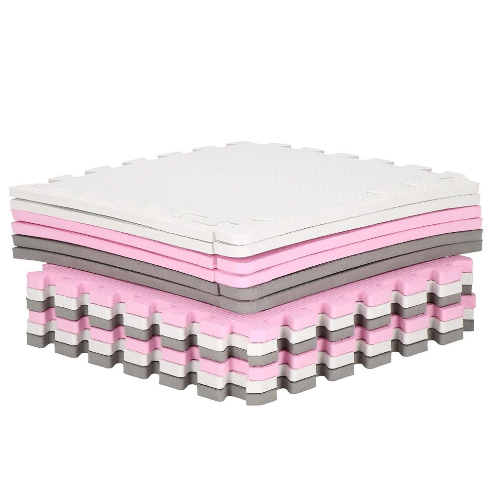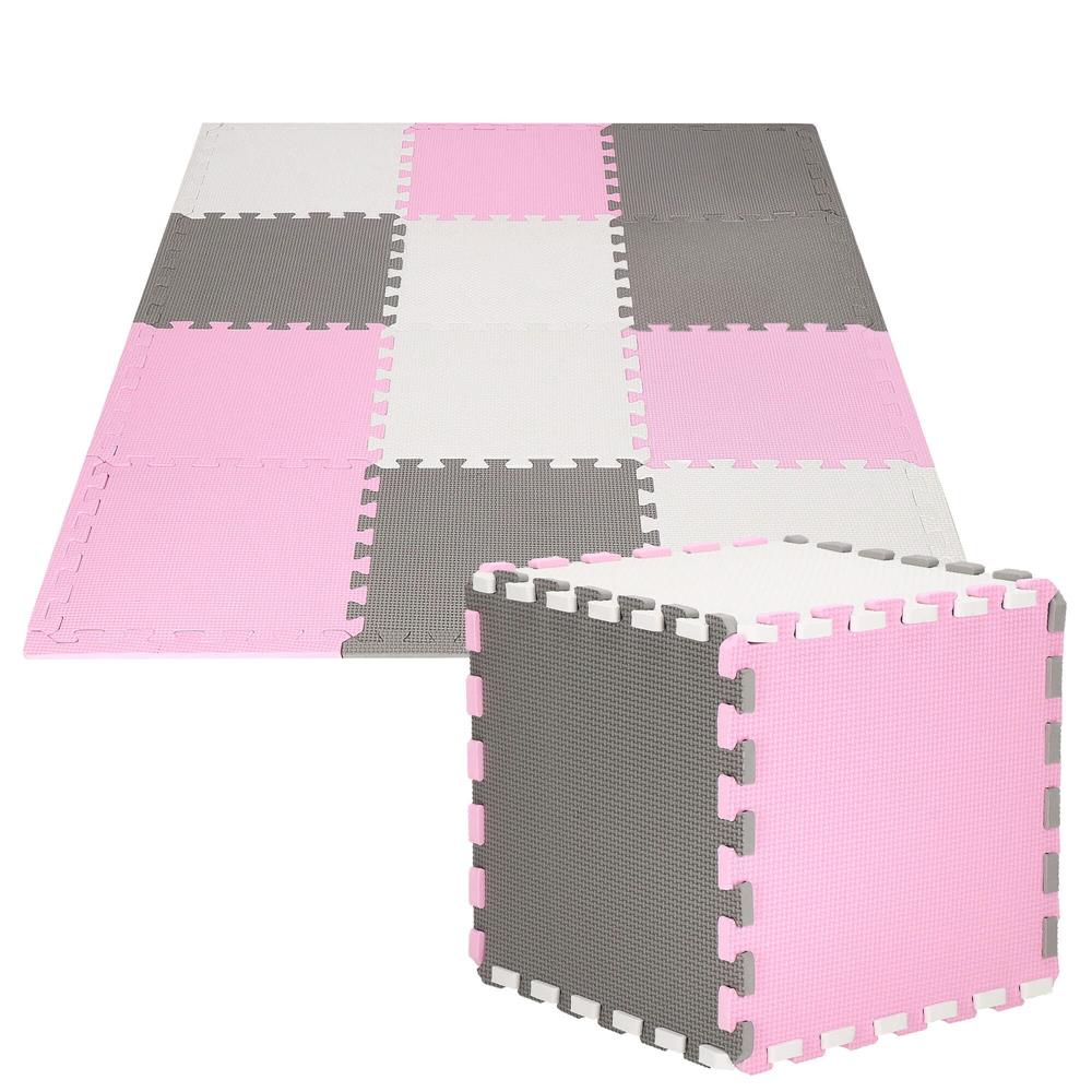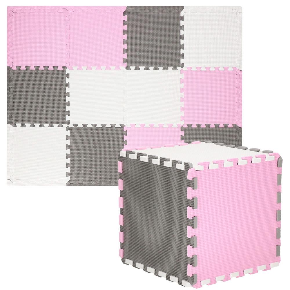 Covor din spuma pentru copii, tip puzzle forme, 26 piese, termoizolant, 118×90 cm, gri roz