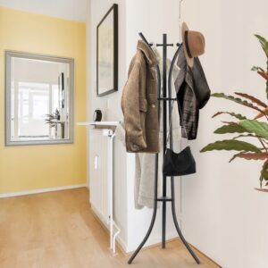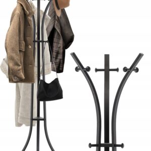 A horog kényelmes tárolóhelyet biztosít kabátok, kabátok, sálak és kézitáskák számára. A masszív, három lábú alap stabilitást biztosít, az elegáns dizájn pedig bármely helyiség díszítő elemévé teszi.