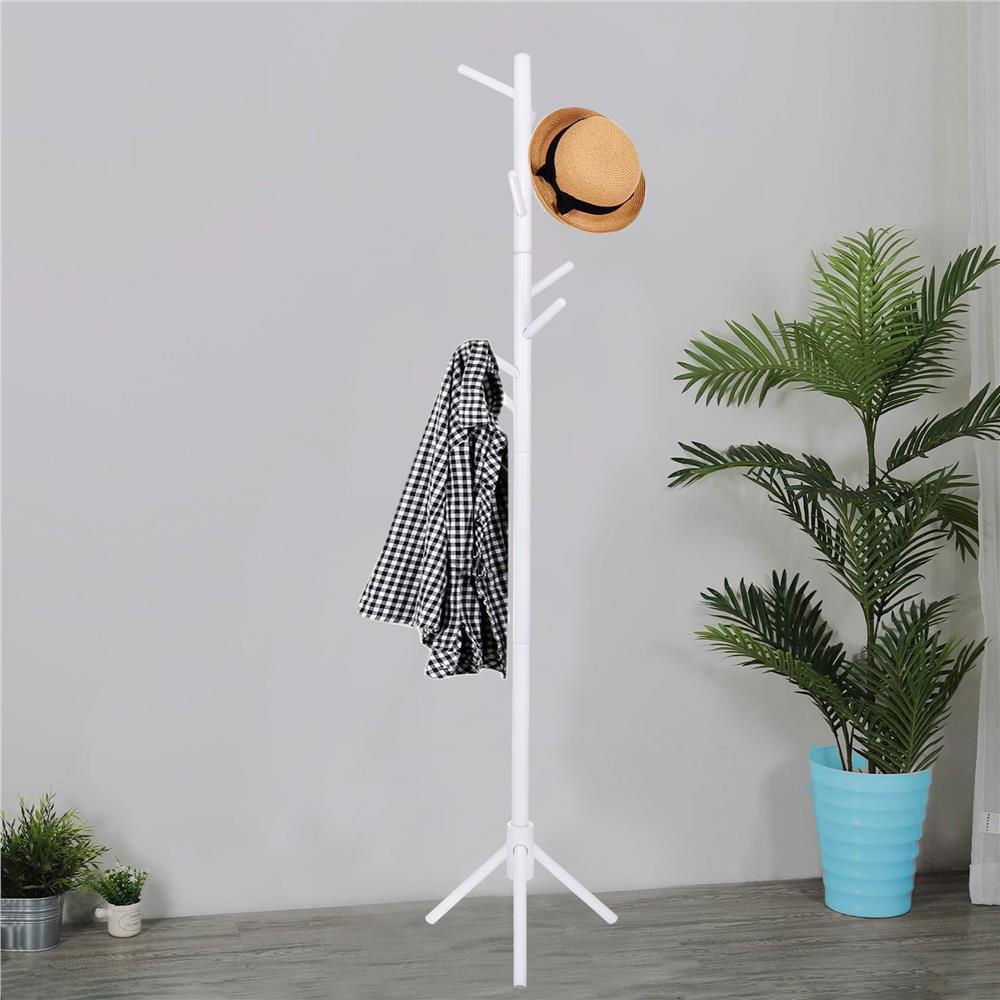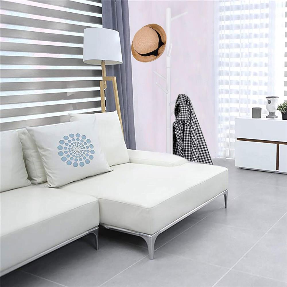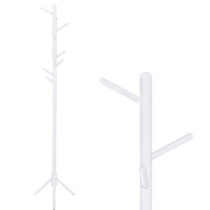 Cuier tip pom din lemn Sersimo, 8 agatatoare, 175cm, alb