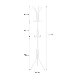 Az akasztó a folyosón vagy a bejárati ajtó melletti helyiségben helyezhető el. Használható felsőruházathoz vagy sapkához. Modern megjelenés, amely minden bizonnyal varázst ad a belső térnek. Az akasztó további előnye a súlya, amely lehetővé teszi a hely könnyű megváltoztatását. Annak érdekében, hogy az akasztó a lehető legstabilabb legyen, az alapnak három lába van. A modern dizájn és a legjobb minőségű anyagok használata garantálja a hosszú élettartamot. Kiválóan működik otthon, üzletben, irodában vagy várótermekben.