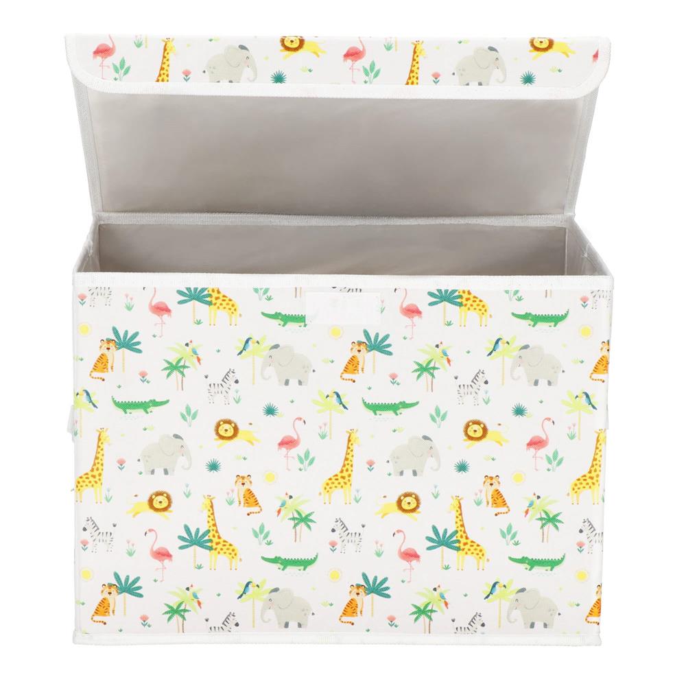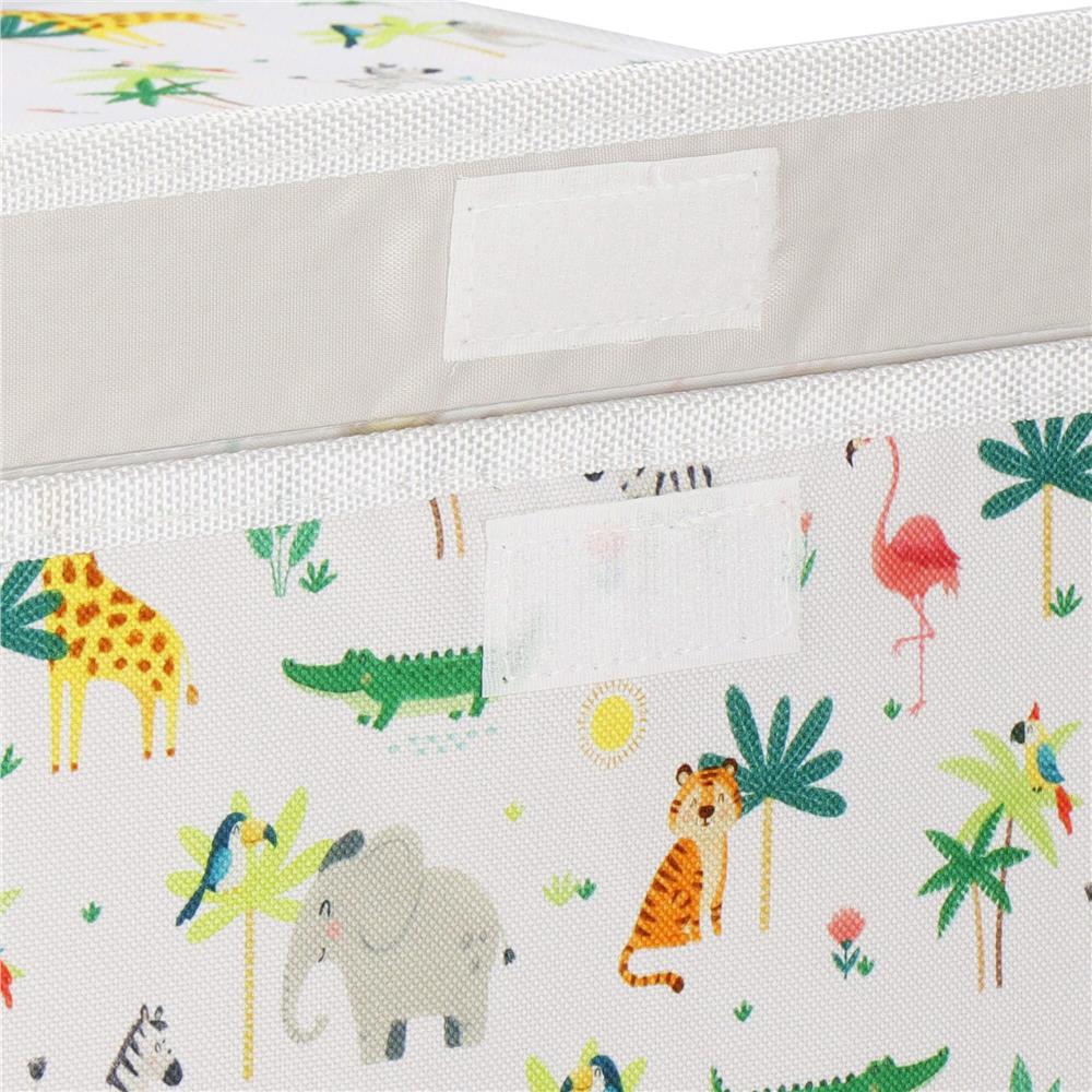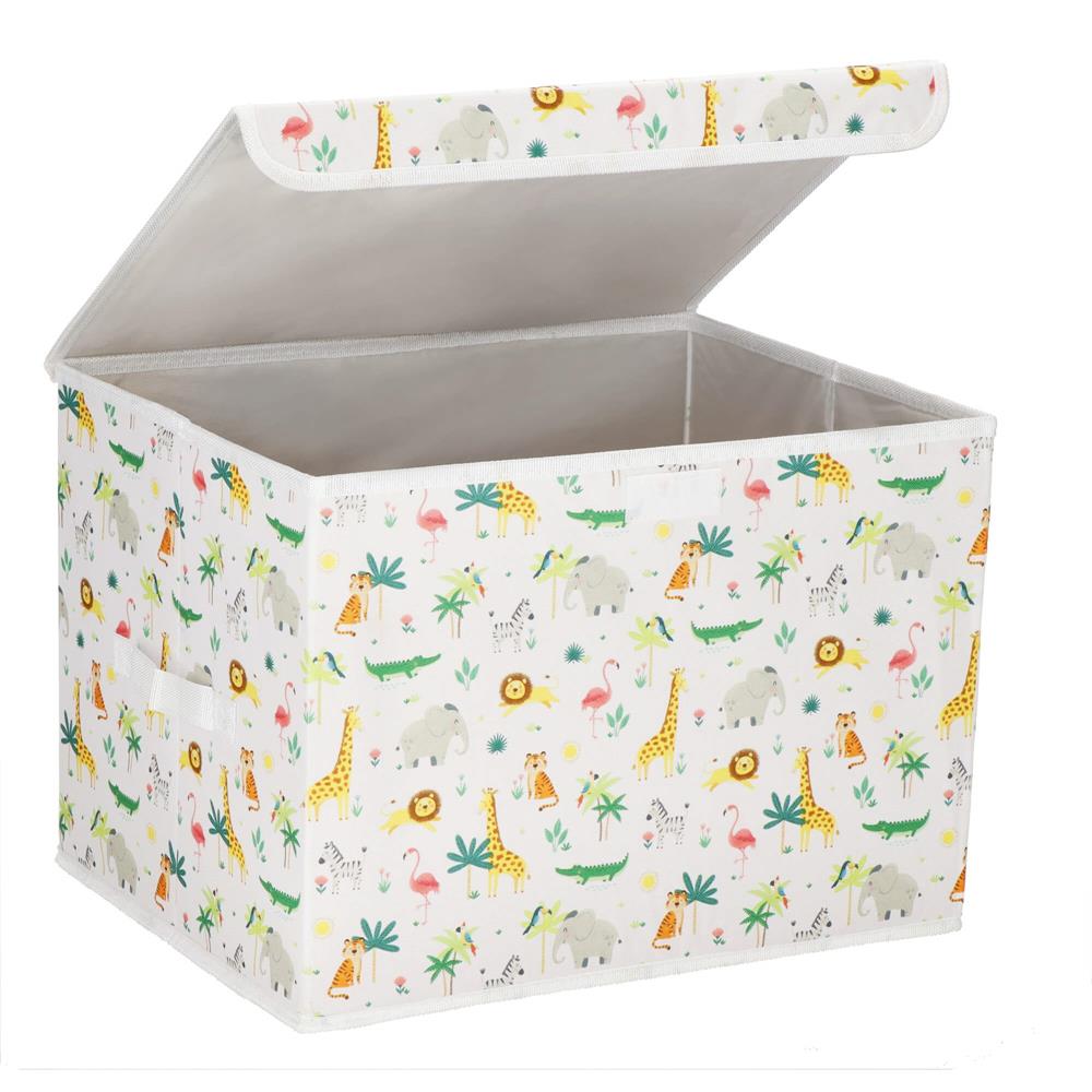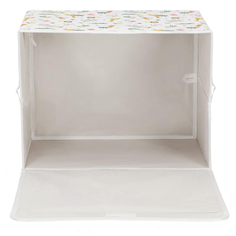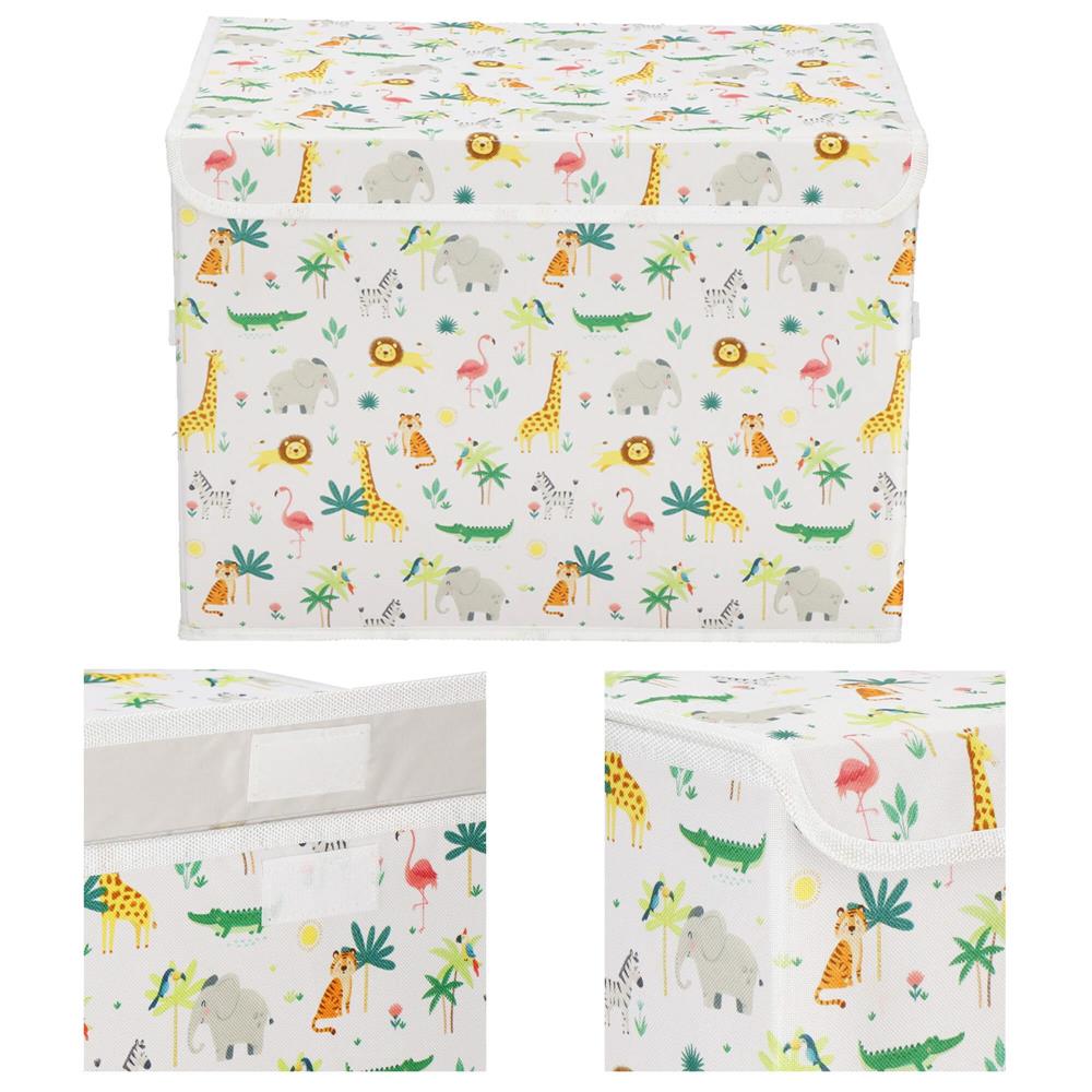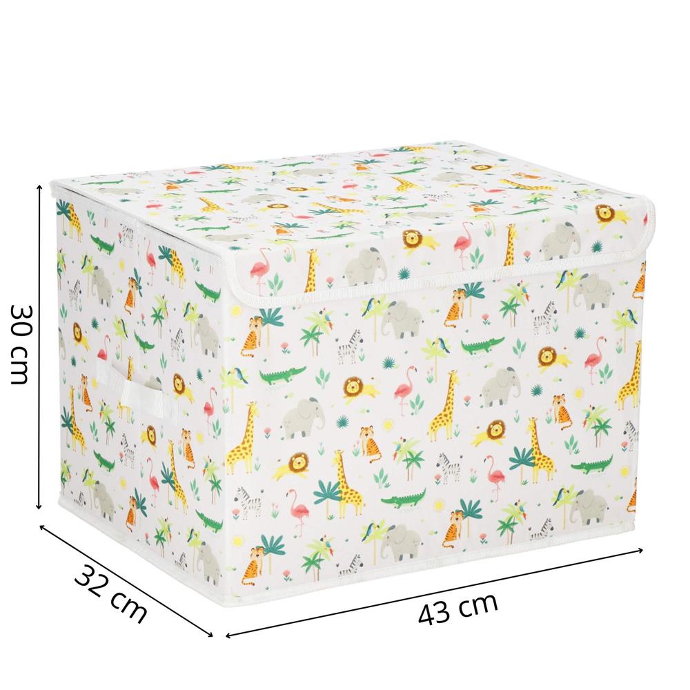 Cutia se inchide cu un capac detasabil. Datorita acestui fapt, continutul va fi protejat impotriva prafului , in timp ce arata foarte ingrijit. Un avantaj urias al produsului este aspectul sau estetic, datorita caruia cutia nu numai ca isi indeplineste perfect rolul de segregare, dar arata si frumos. Modelul colorat va atrage cu siguranta fiecare copil. Materialul netesut care constituie materialul de baza al organizatorului este usor de curatat. Cutia este pliabila, astfel incat este usor de depozitat chiar si atunci cand nu o utilizati. Elementul care intareste fundul creste capacitatea de incarcare a organizatorului. Procesul de pliere si desfasurare este foarte simplu si chiar si un copil se poate descurca.