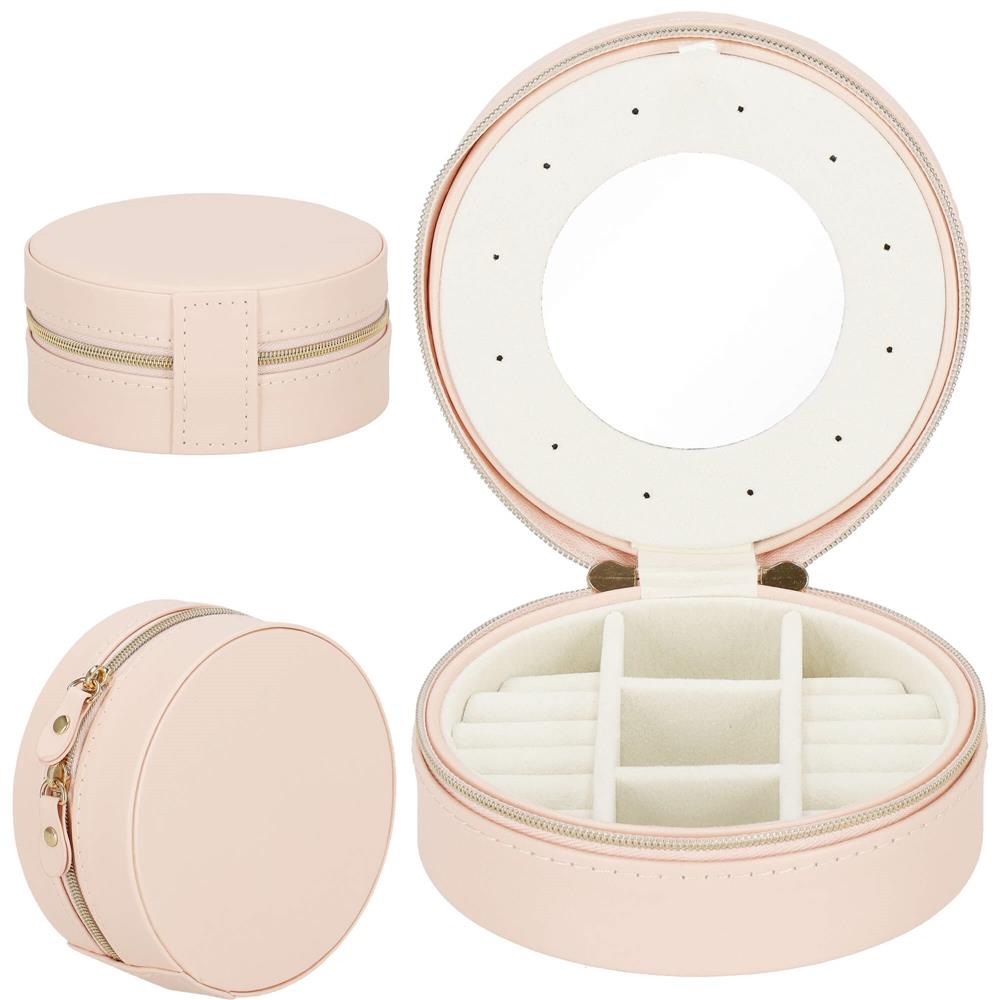 (DL) Ékszertároló és rendszerező doboz, MDF, ökobőr, 11 x 5 cm, világos rózsaszín